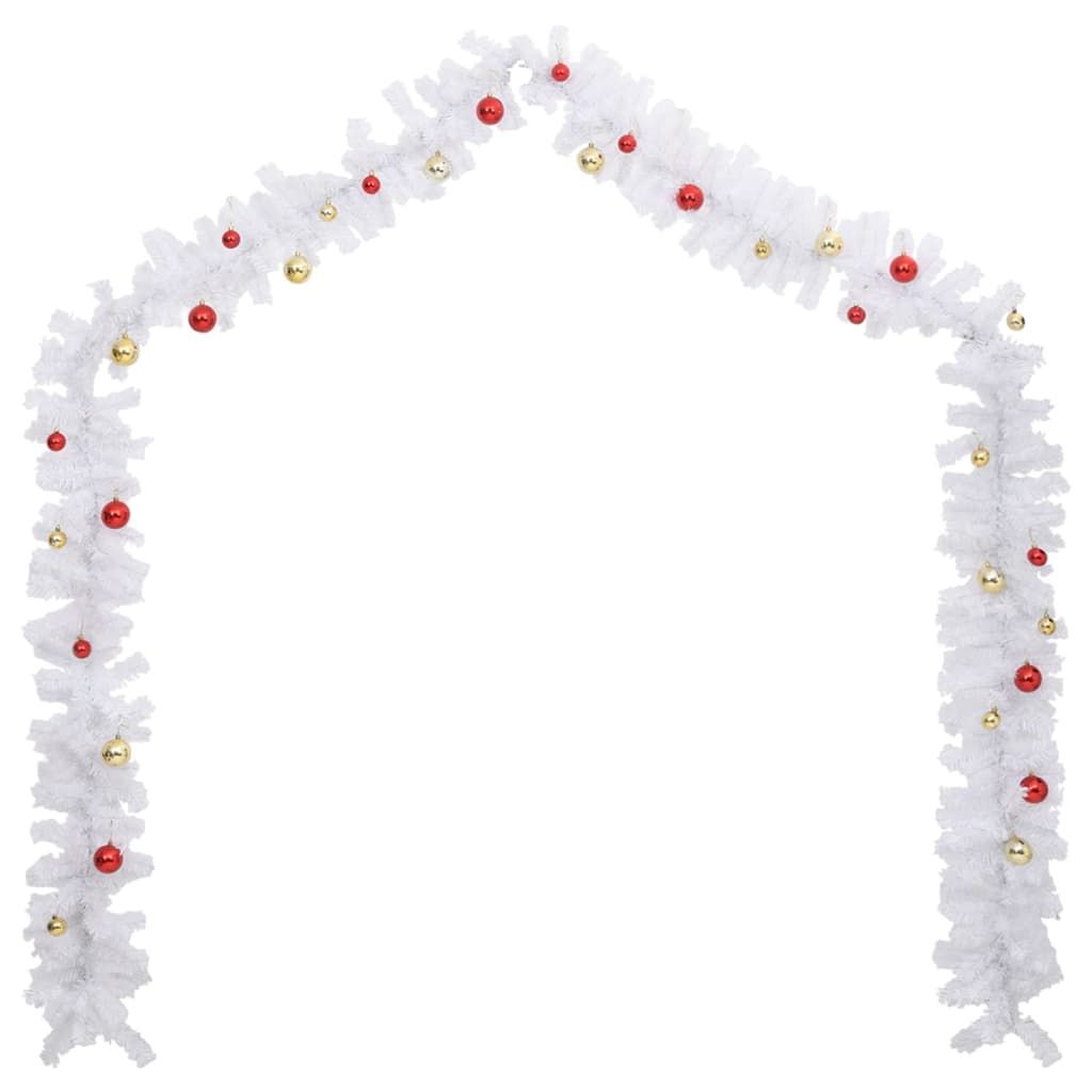 vidaXL vidaXL Weihnachtsgirlande Geschmückt mit Kugeln Weiß 5 m