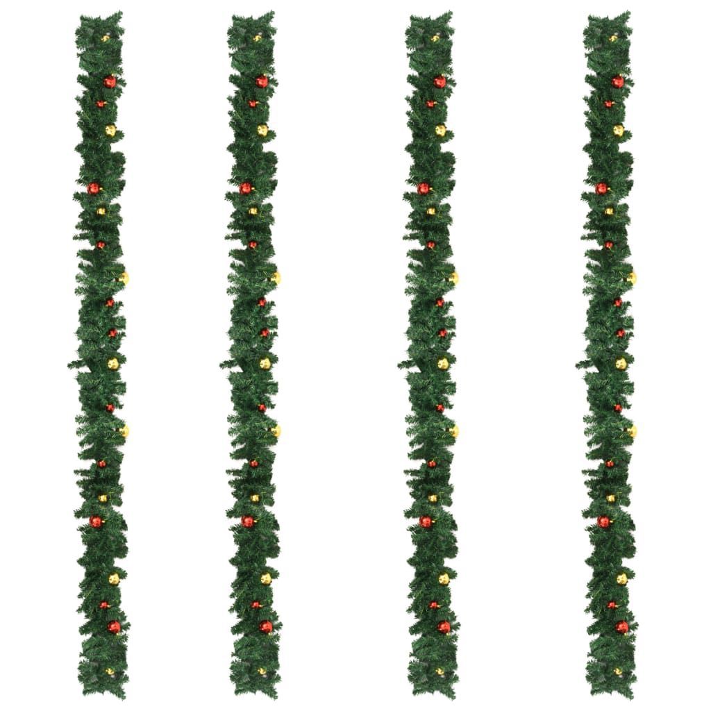 vidaXL vidaXL Weihnachtsgirlanden 4 Stk. mit Kugeln Grün 270 cm PVC