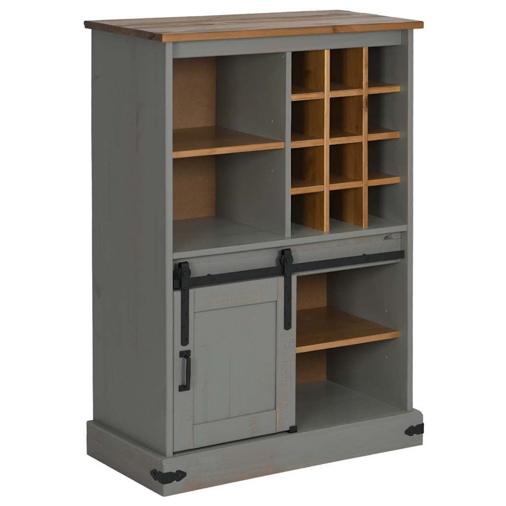 vidaXL vidaXL Weinschrank HALDEN mit Weinregalen und Schiebetür Grau Kiefer