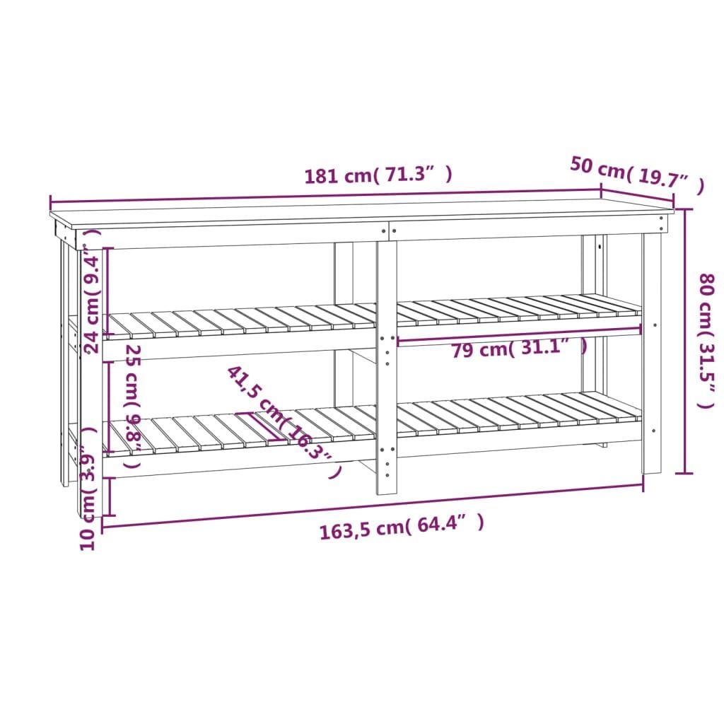 vidaXL vidaXL Werkbank 181x50x80 cm Massivholz Kiefer