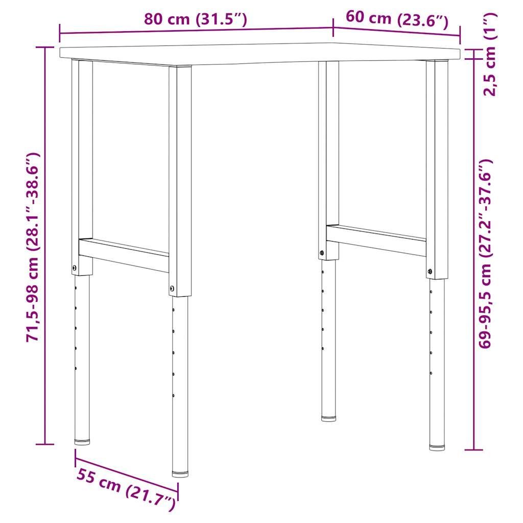 vidaXL vidaXL Werkbank Dunkelbraun 80x60x(71,5-98) cm Massivholz Eiche
