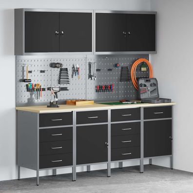 • vidaXL Werkbank-Set 8 pcs Schwarz und Grau Pulverbeschichteter Stahl