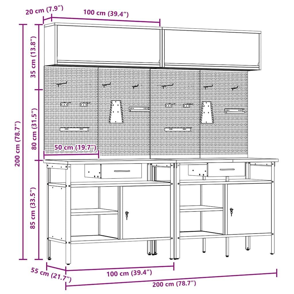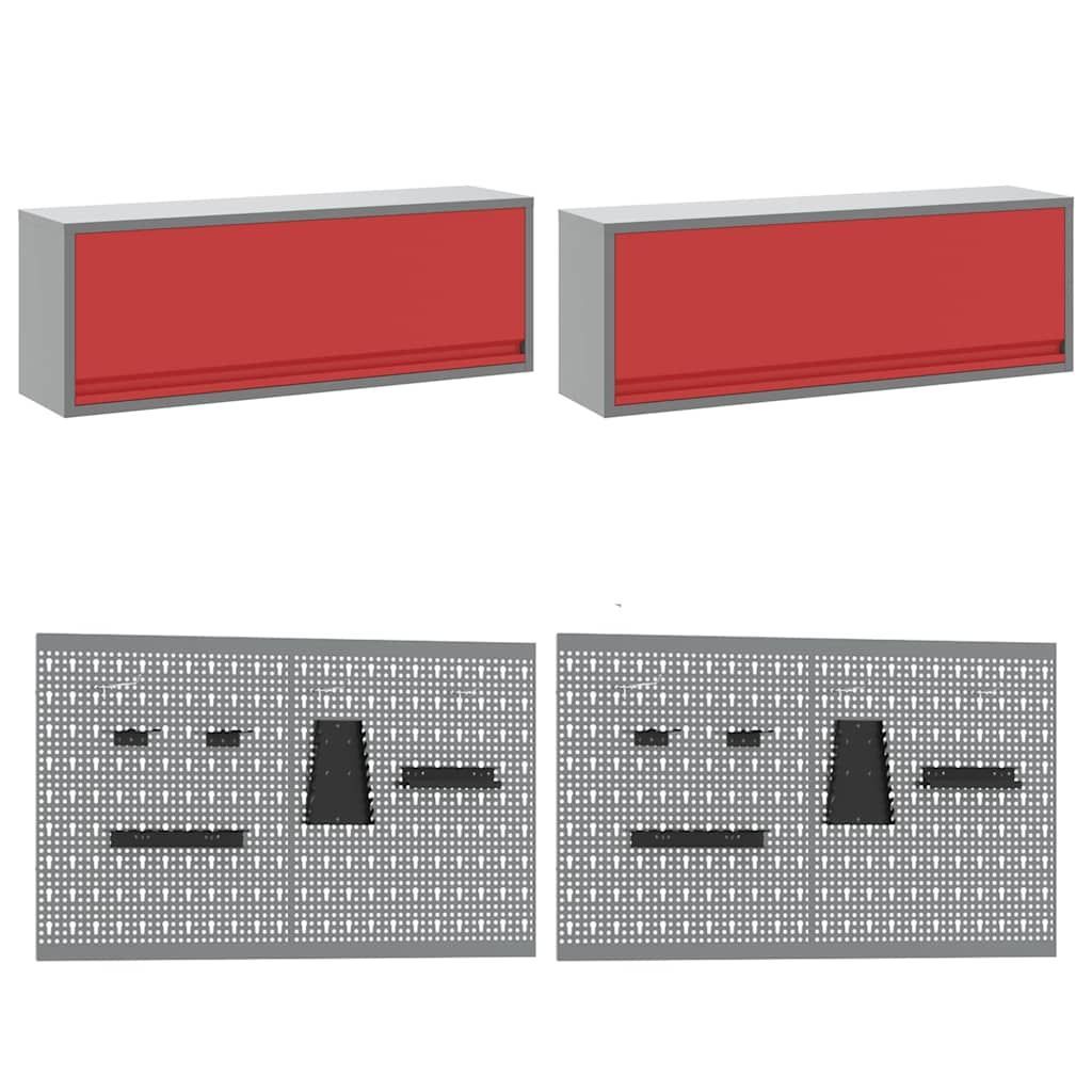 vidaXL vidaXL Werkbank-Set 8 pcs Rot und Grau Pulverbeschichteter Stahl