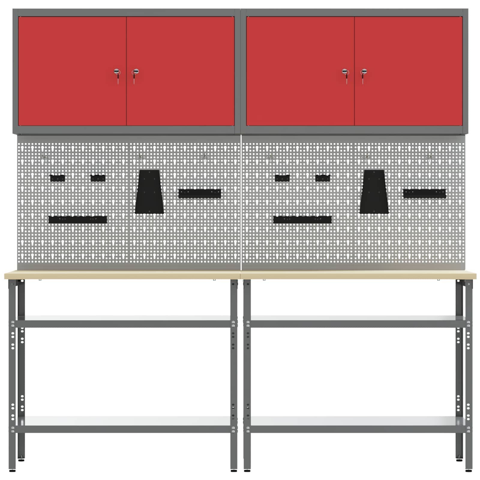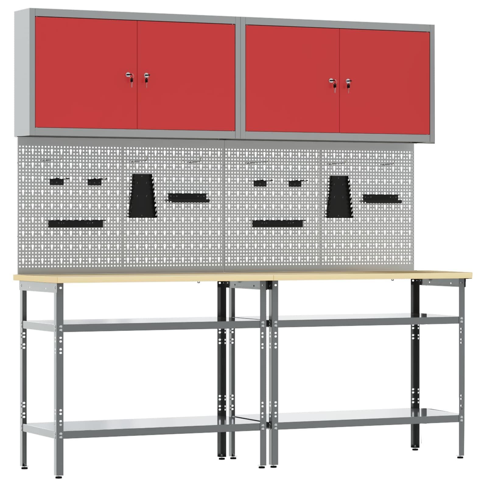 vidaXL vidaXL Werkbank-Set 8 pcs Rot und Grau Pulverbeschichteter Stahl