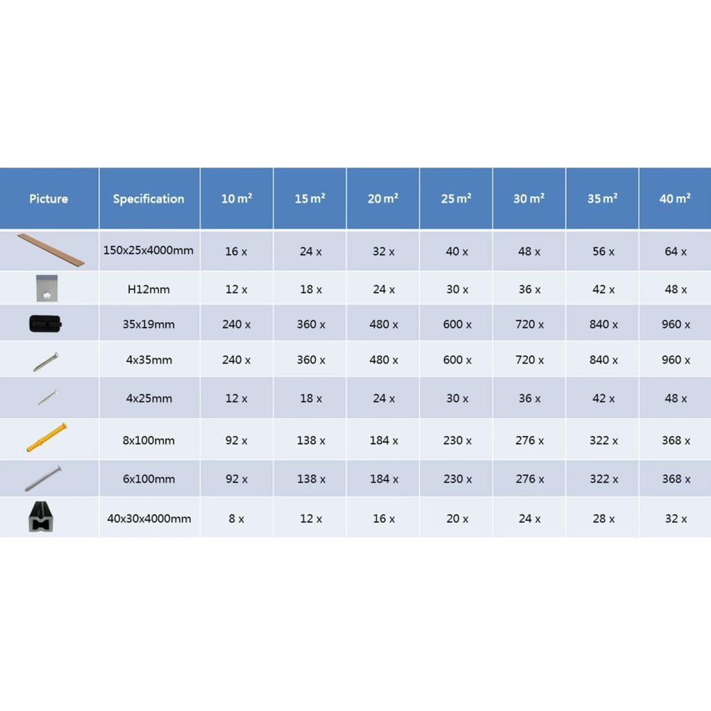 • vidaXL WPC Hohlkammer Terrassendielen mit Zubehör 40m² 4m Dunkelbraun