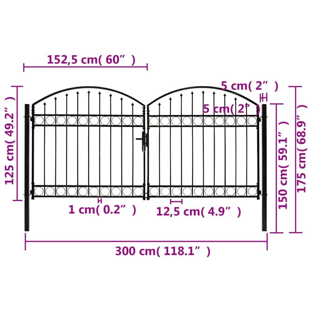 vidaXL vidaXL Zauntor Doppelflügel Gewölbte Spitze Stahl 300 x 125 cm Schwarz