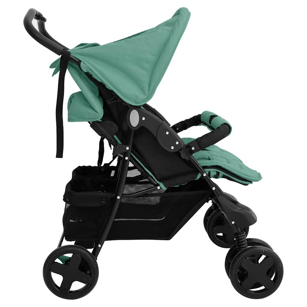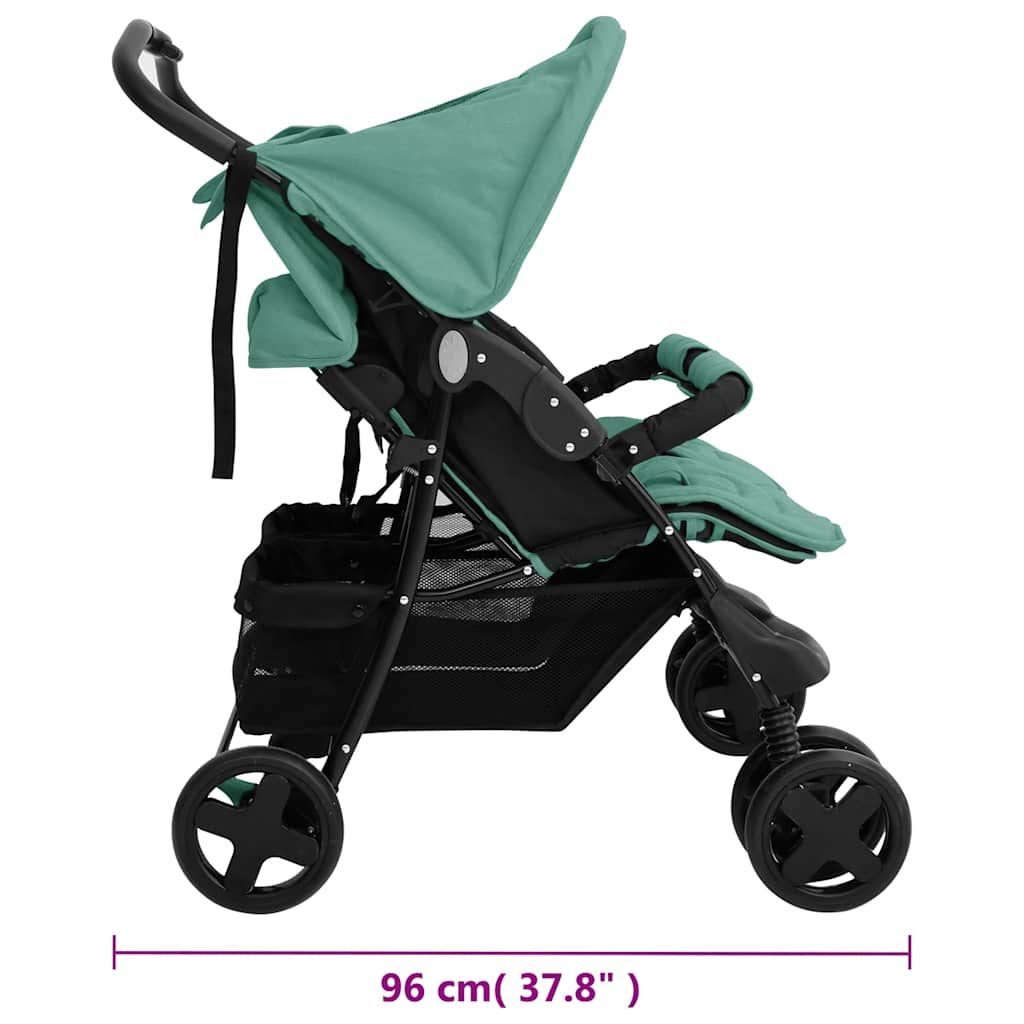 vidaXL vidaXL Zwillingskinderwagen Grün Stahl