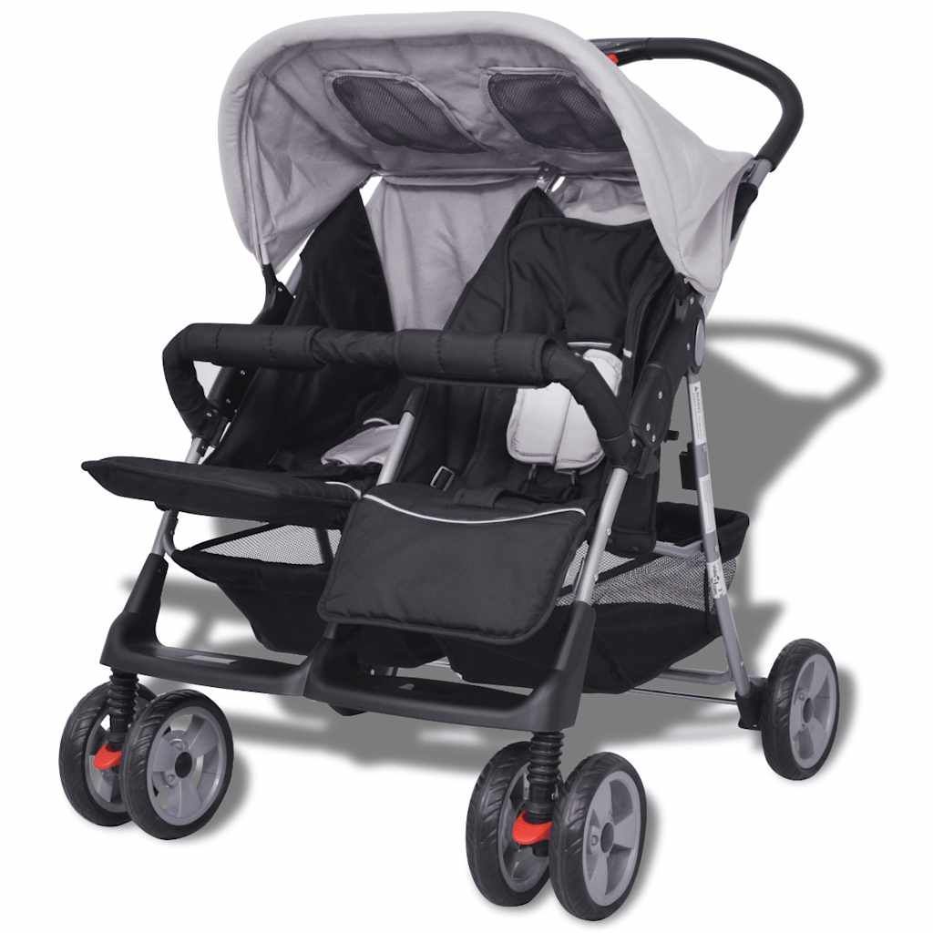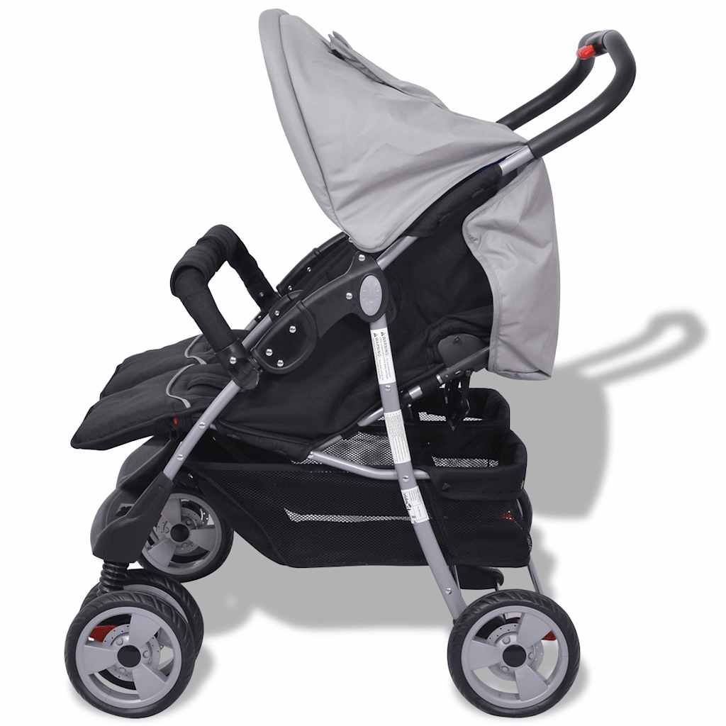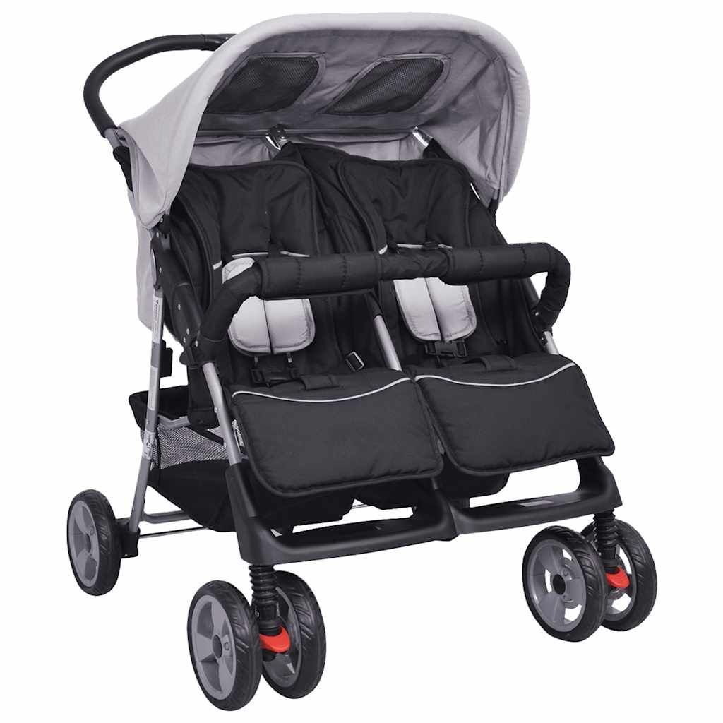 vidaXL vidaXL Zwillingskinderwagen Stahl Grau und Schwarz