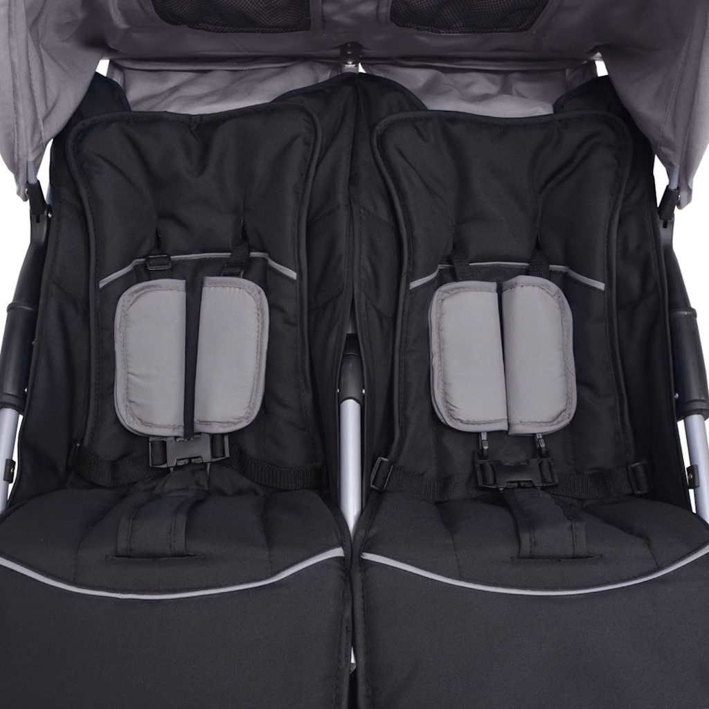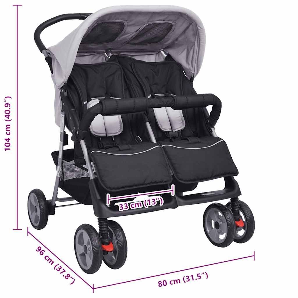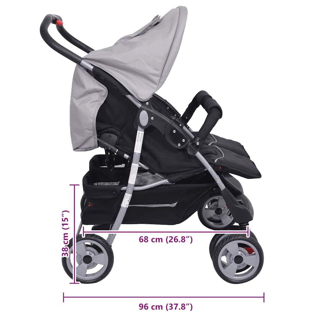 vidaXL vidaXL Zwillingskinderwagen Stahl Grau und Schwarz