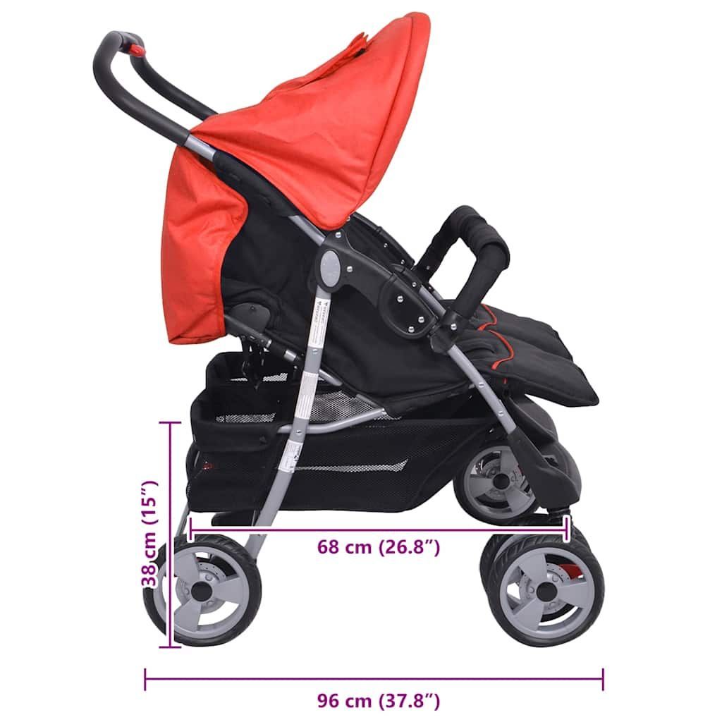 vidaXL vidaXL Zwillingskinderwagen Stahl Rot und Schwarz