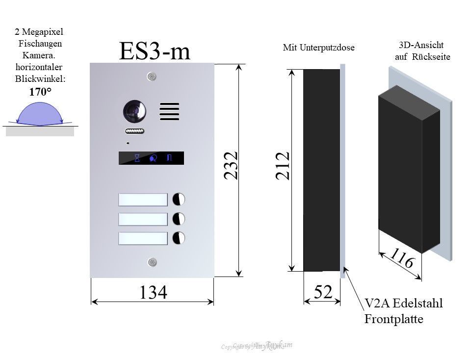 Video Türsprechanlage Videosprechanlage 3-Familienhaus 2Draht ES3m+ DT47M-W