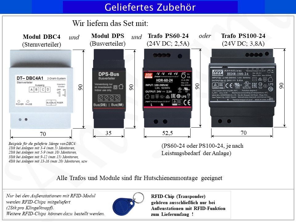 Video Türsprechanlage Videosprechanlage 4-Familienhaus 2Draht ES4ID+ DT47M-B
