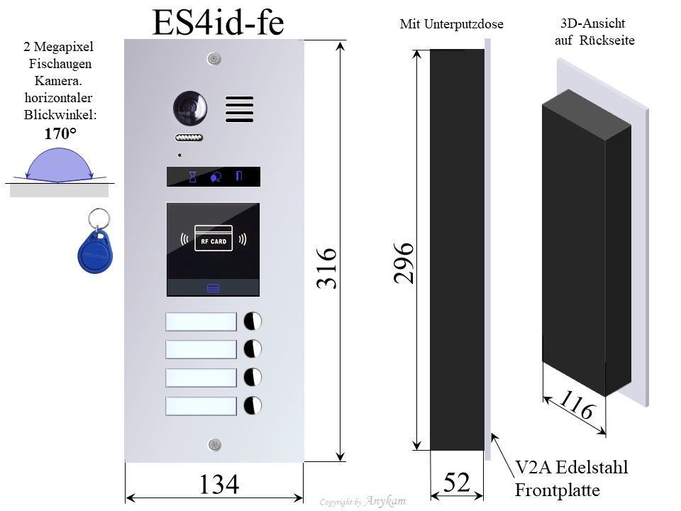 Video Türsprechanlage Videosprechanlage 4-Familienhaus 2Draht ES4ID+ DT47M-W