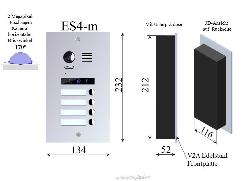Video Türsprechanlage Videosprechanlage 4-Familienhaus 2Draht ES4m+ DT47M-W