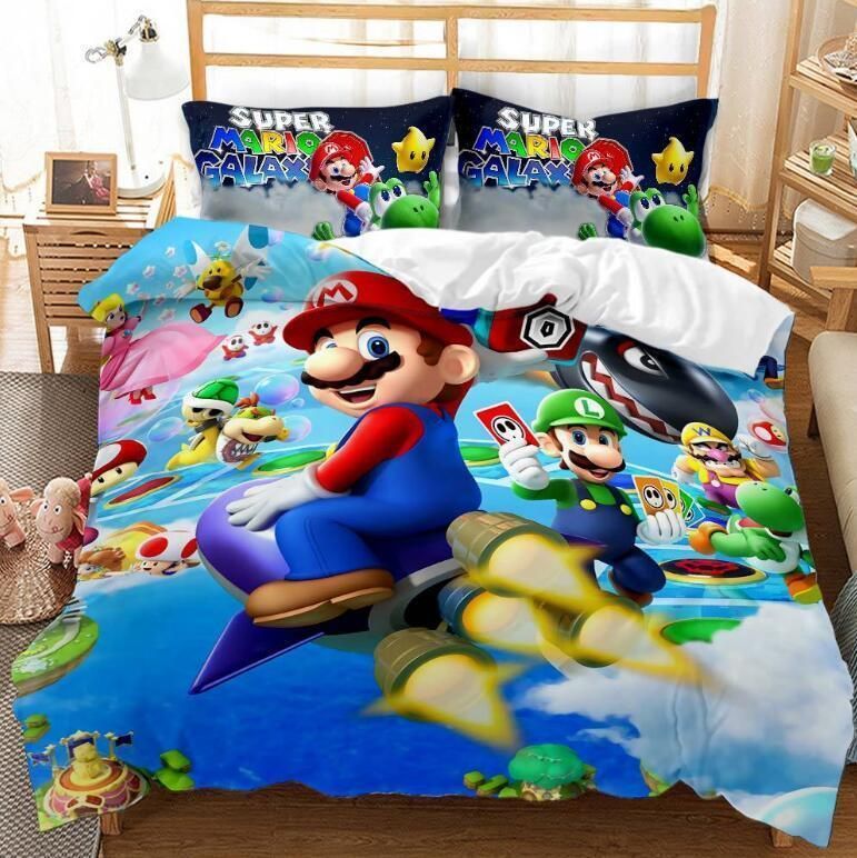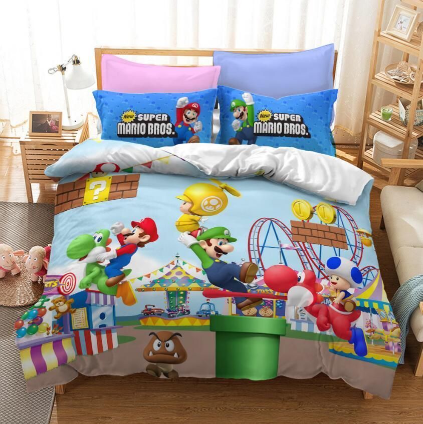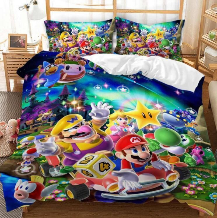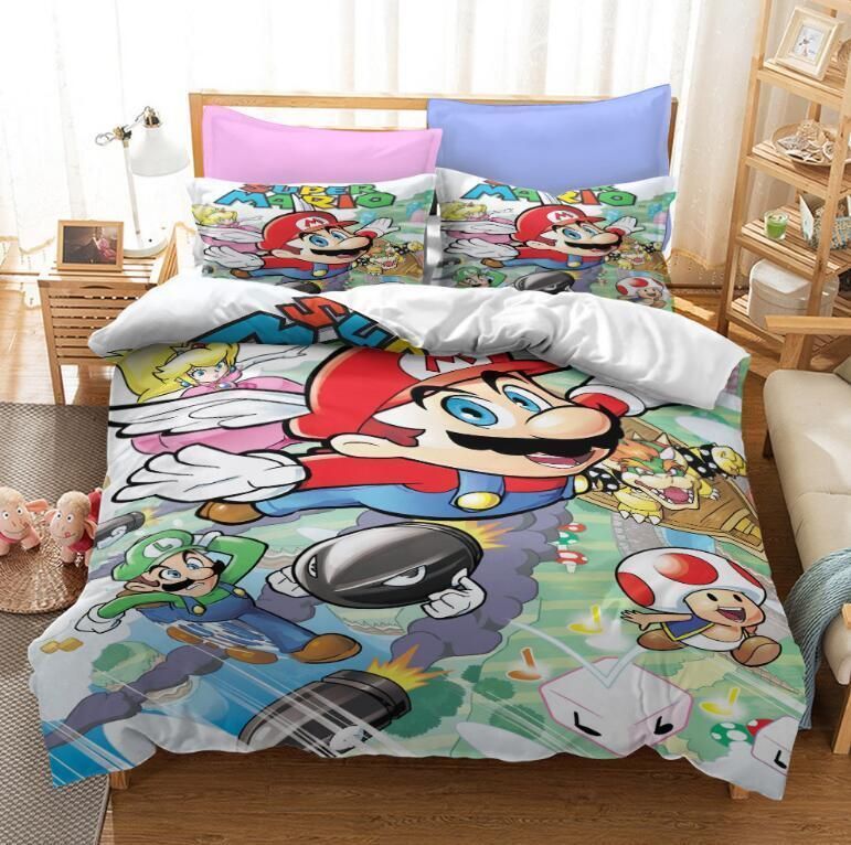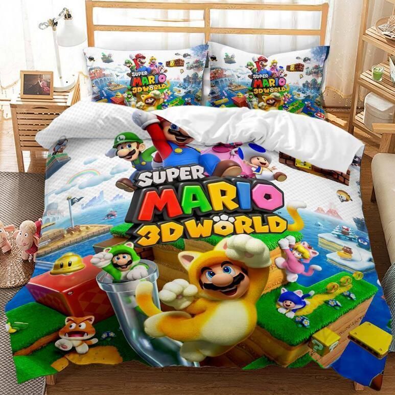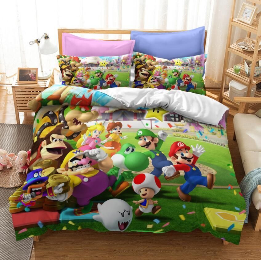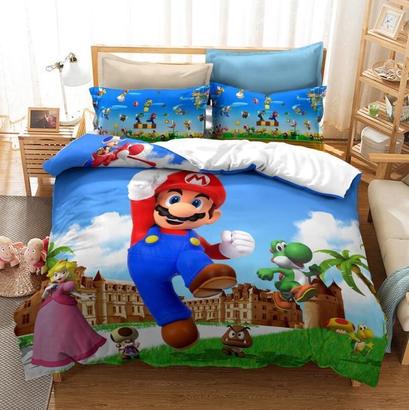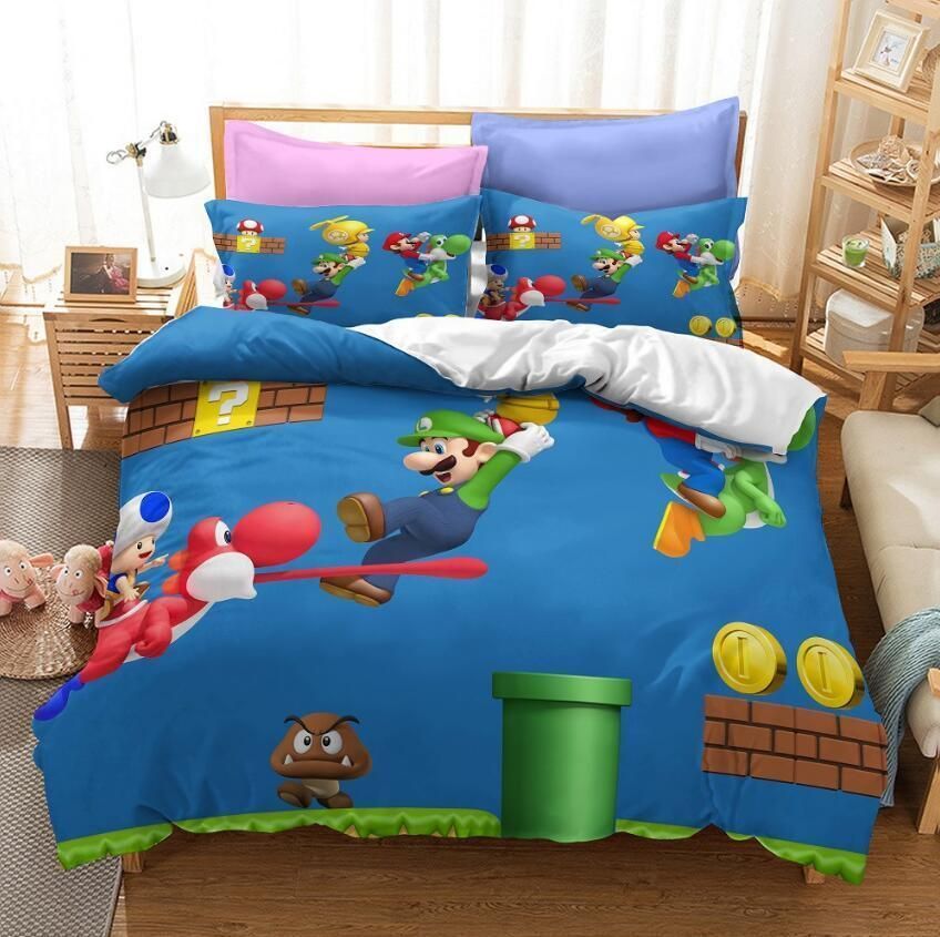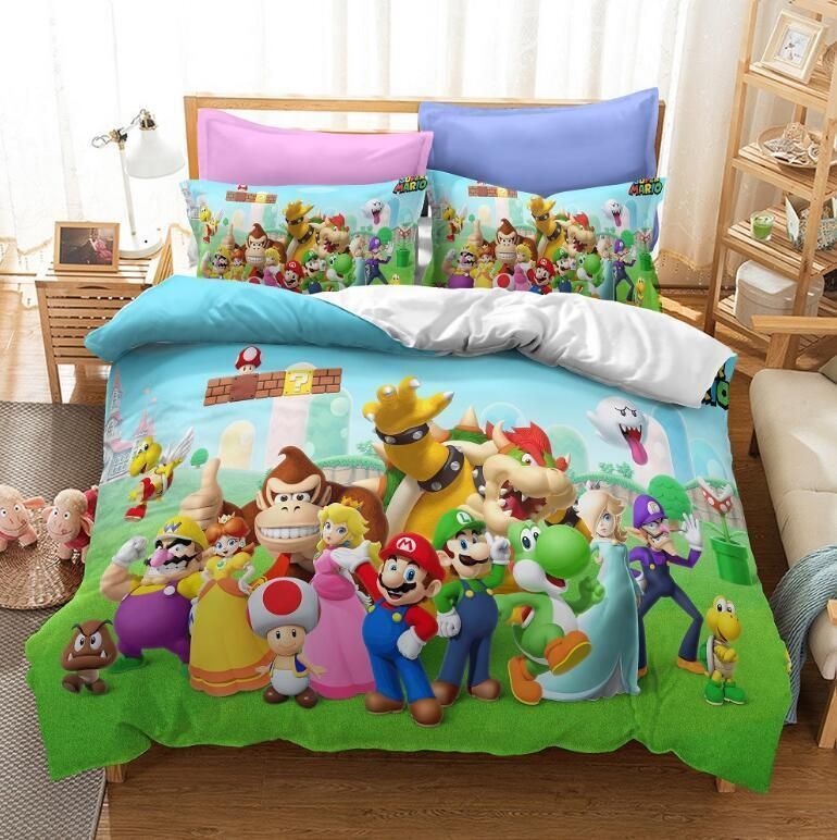 Videospiele Mario Bettwasche Set Kissenbezuge 80x80 Anpassbar Bettbezug 135x200