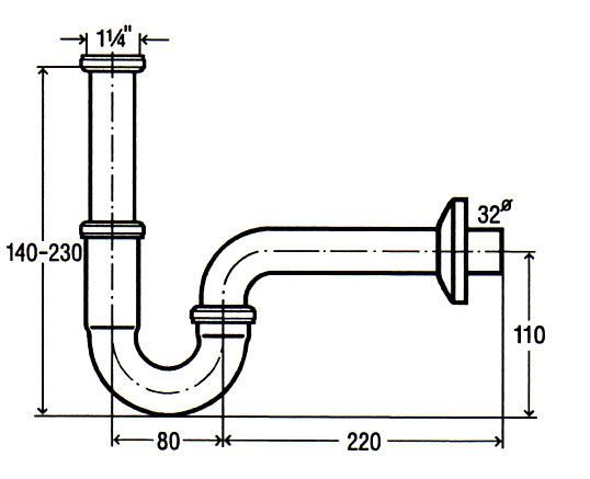 Viega Röhren-Geruchverschluss Plus 1 1/4 Zoll 5611.5 mit verlängertem Tauchrohr