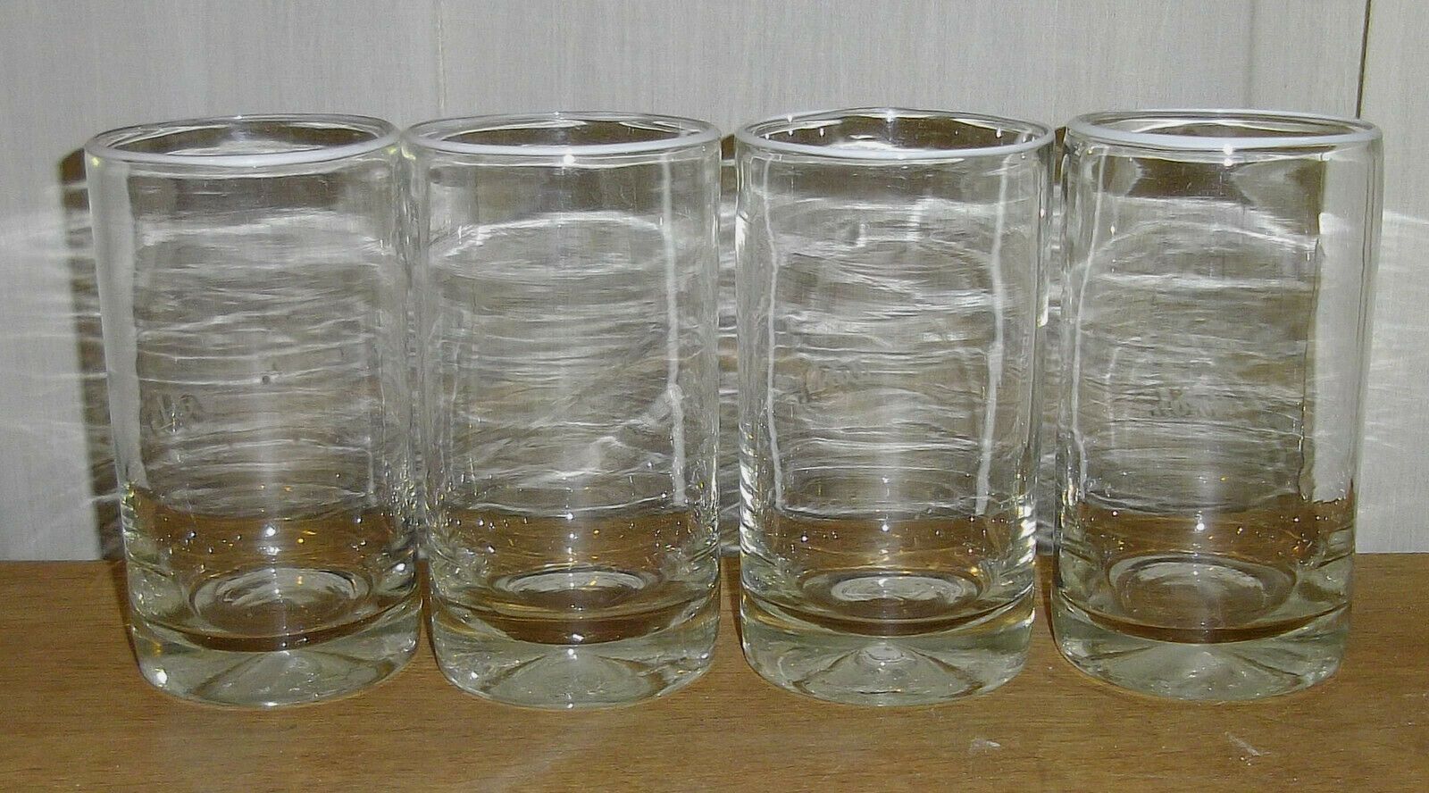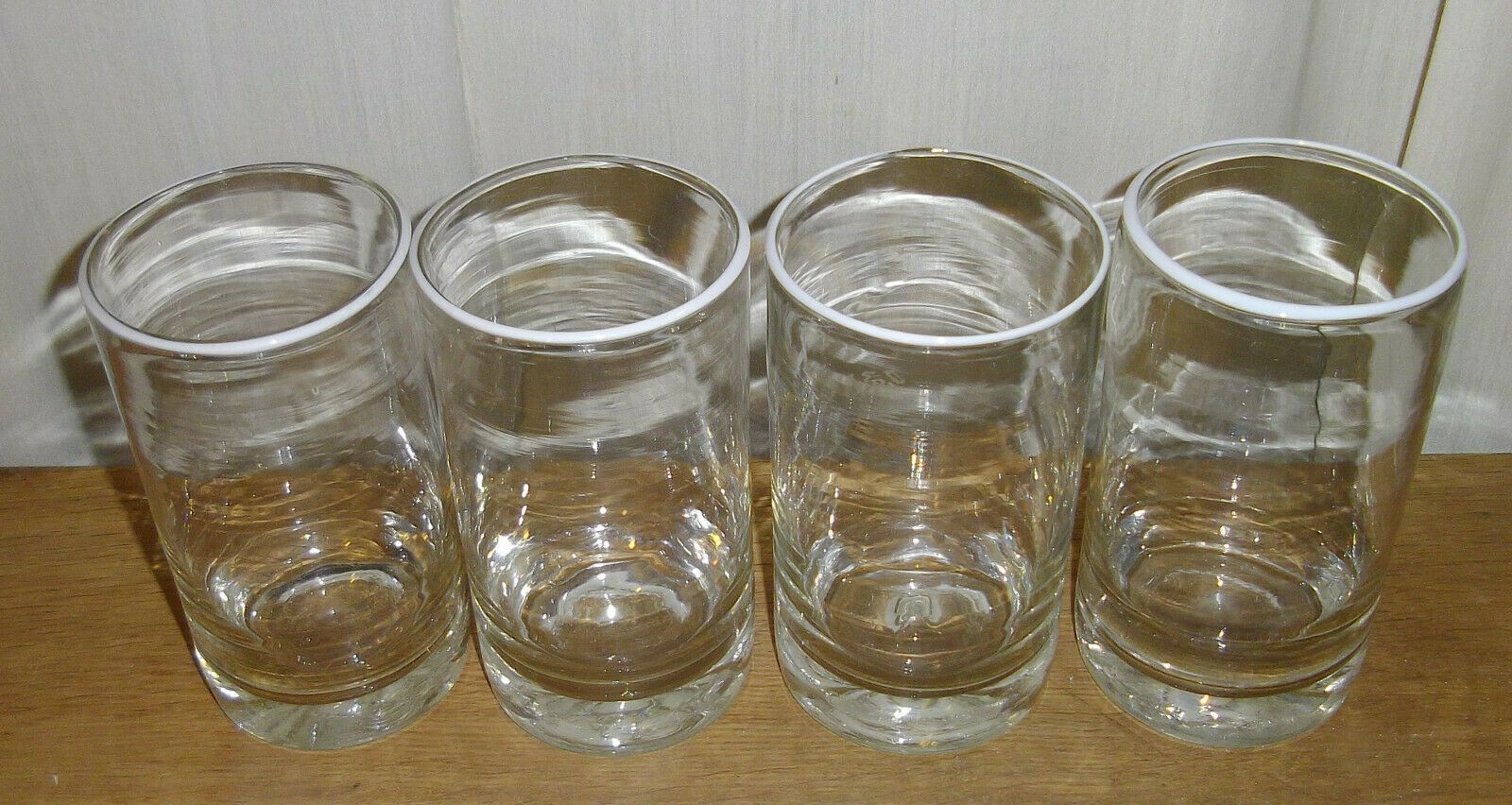 4 große Biergläser um 1960. Herkunft: Dänemark. Alle mundgeblasen mit Abriss. Sehr schwer, mit weißem Oberrand. Maße: Höhe 17,5 cm. Antikes am Deich - Inh: Oliver Kipp-Trense G M T Sprache erkennen Afrikaans Albanisch Arabisch Armenisch Aserbaidschanisch Baskisch Bengalisch Bosnisch Bulgarisch Burme