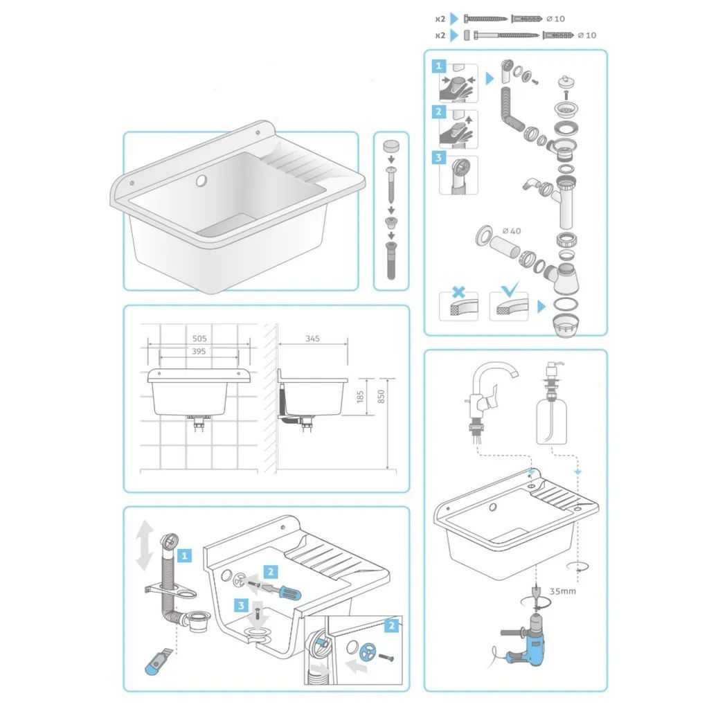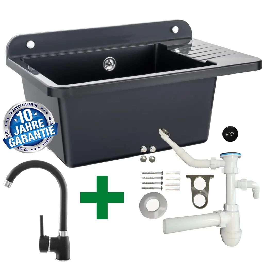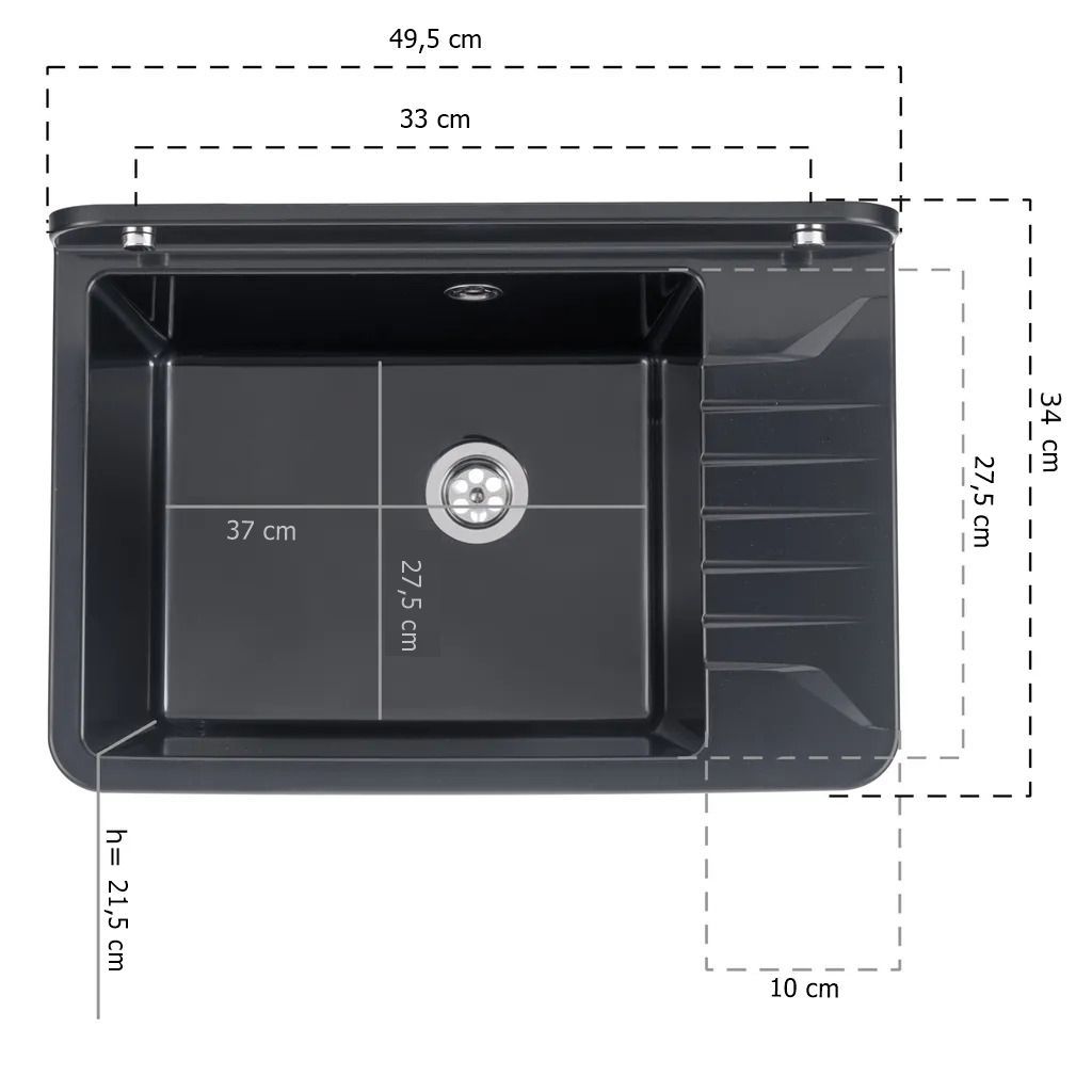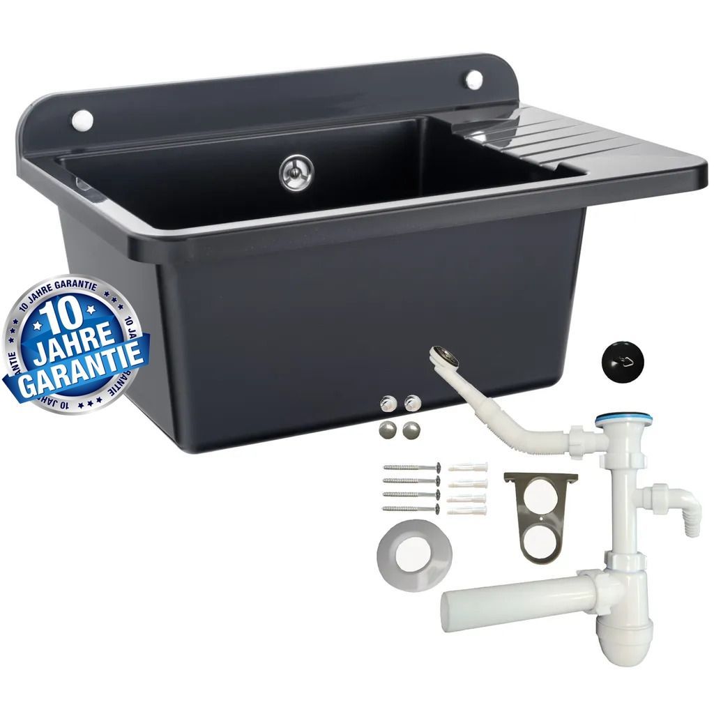VIGO Becken 50x43 cm – mit Abtropffläche, inkl. Siphon