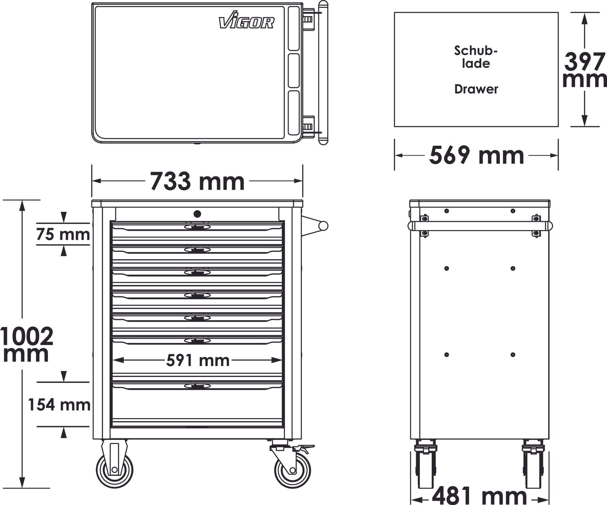 Vigor VIGOR Werkstattwagen Series L mit Sortiment und Aufsatzkoffer V4561 344-teilig