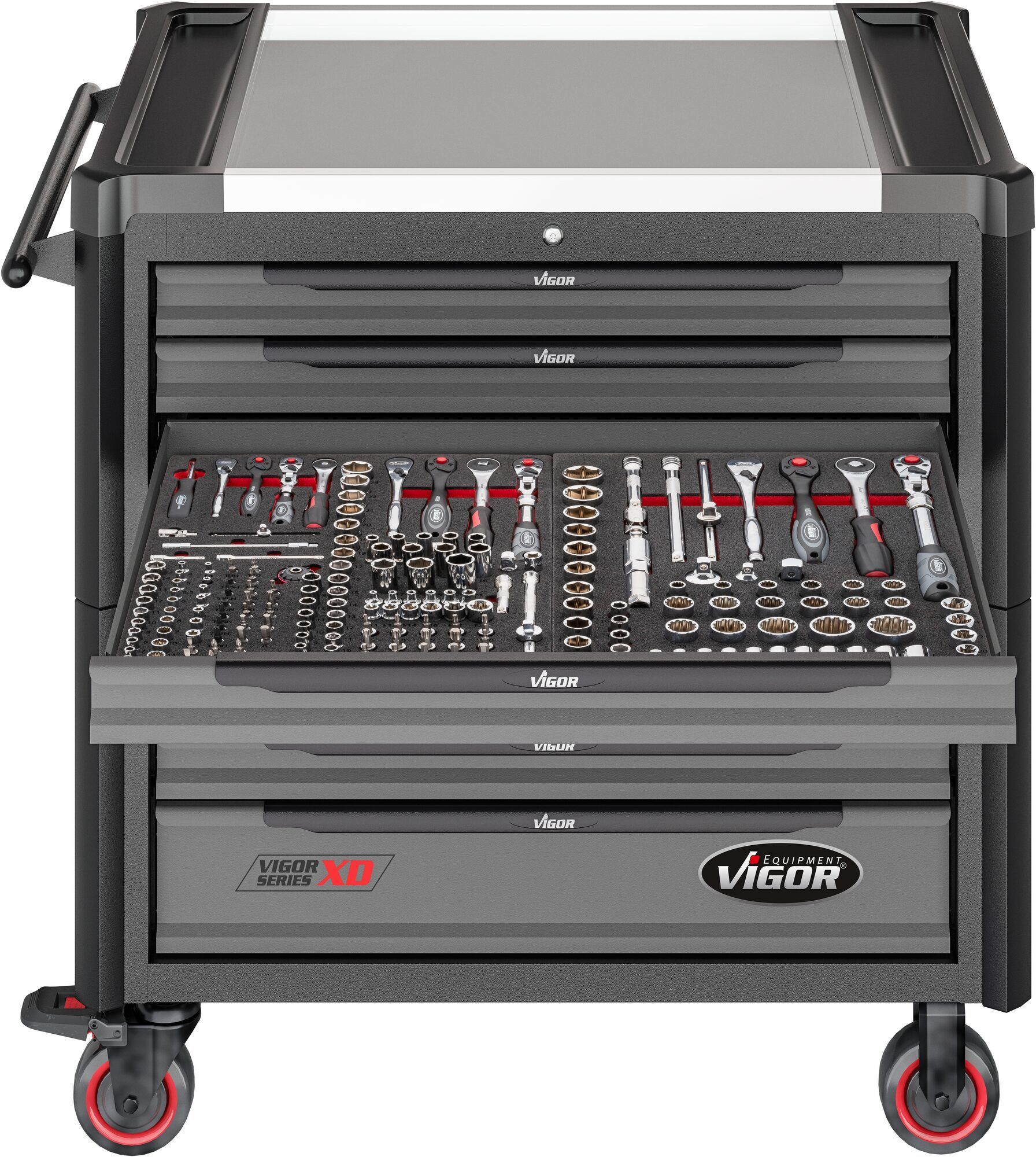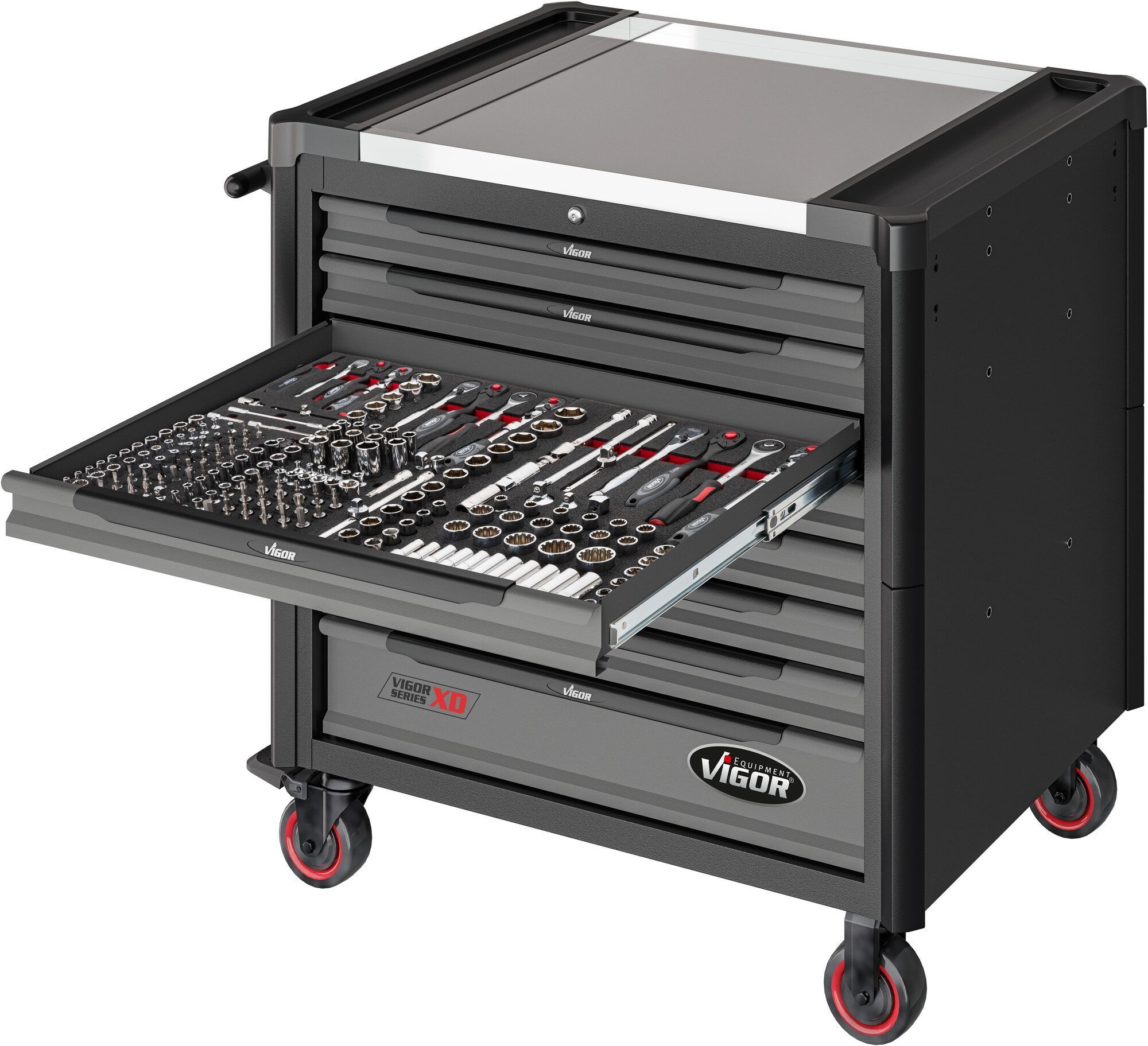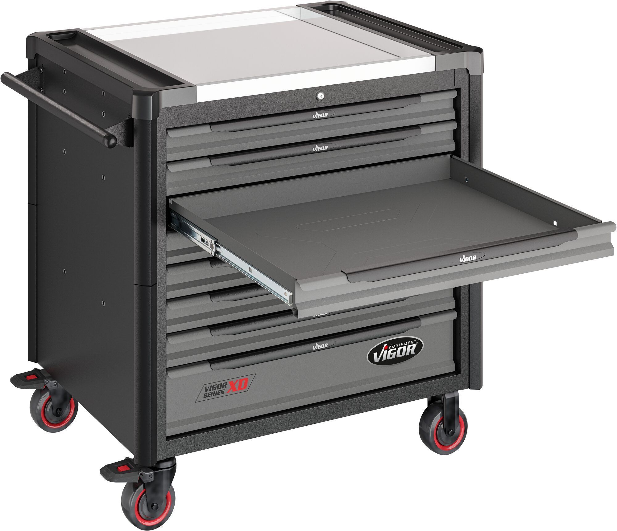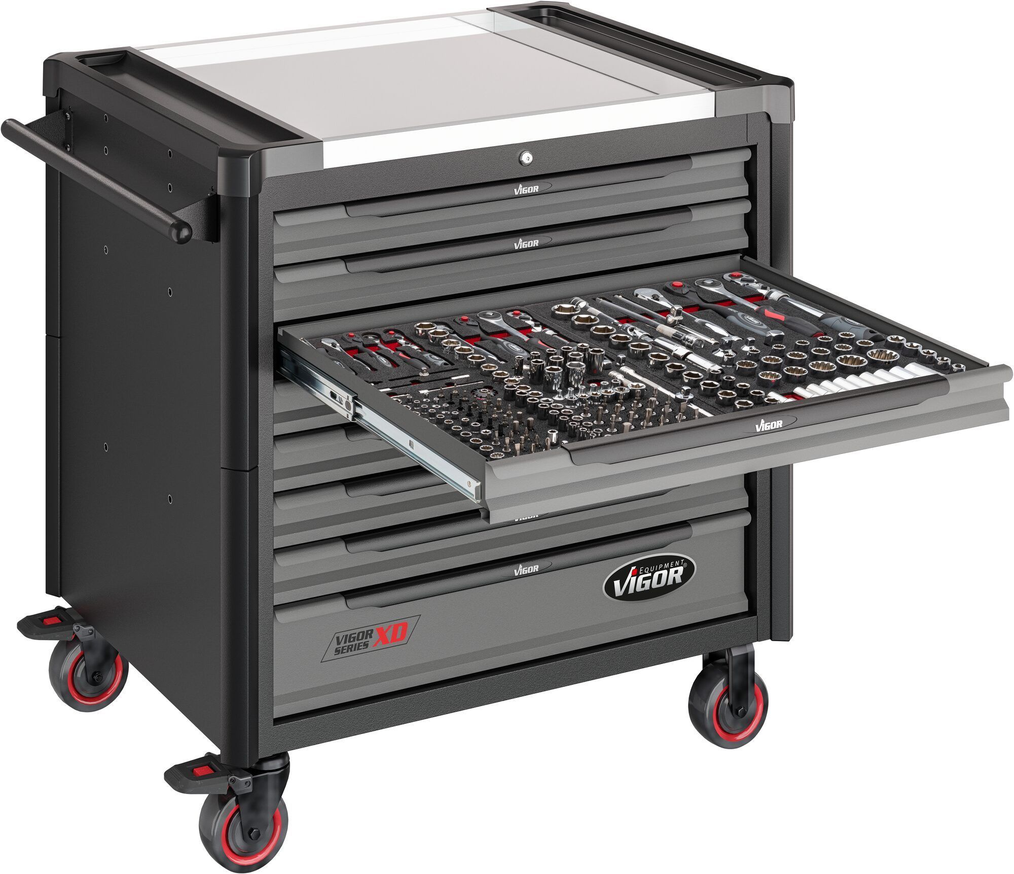 Vigor VIGOR Werkstattwagen Series XD extratief Edelstahl-Arbeitsplatte mit Sortiment
