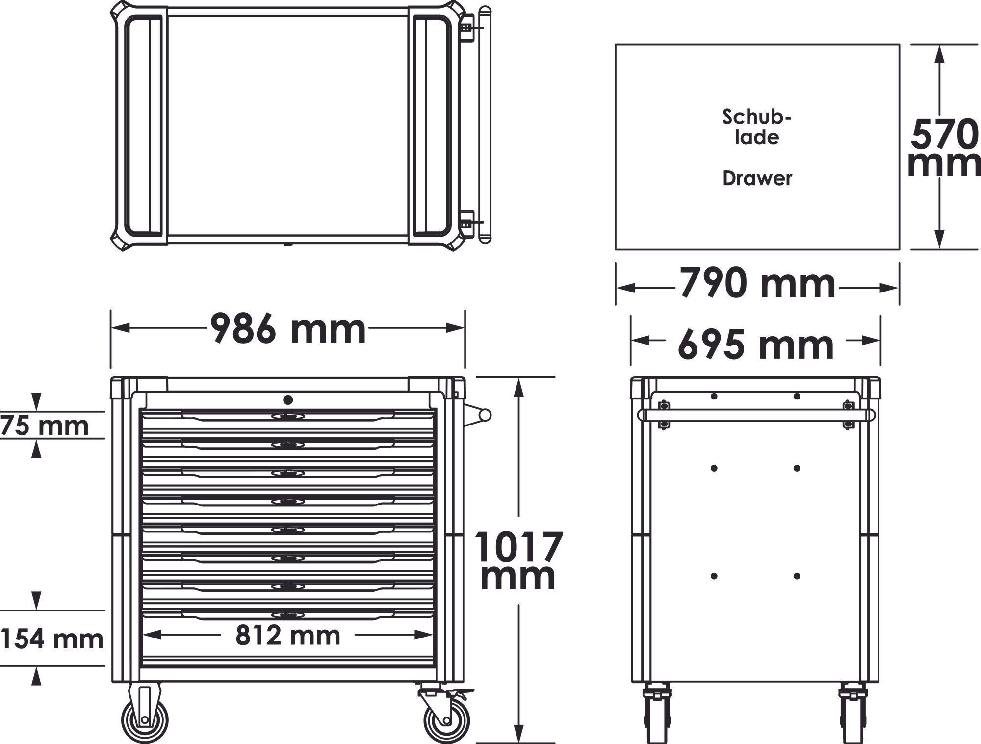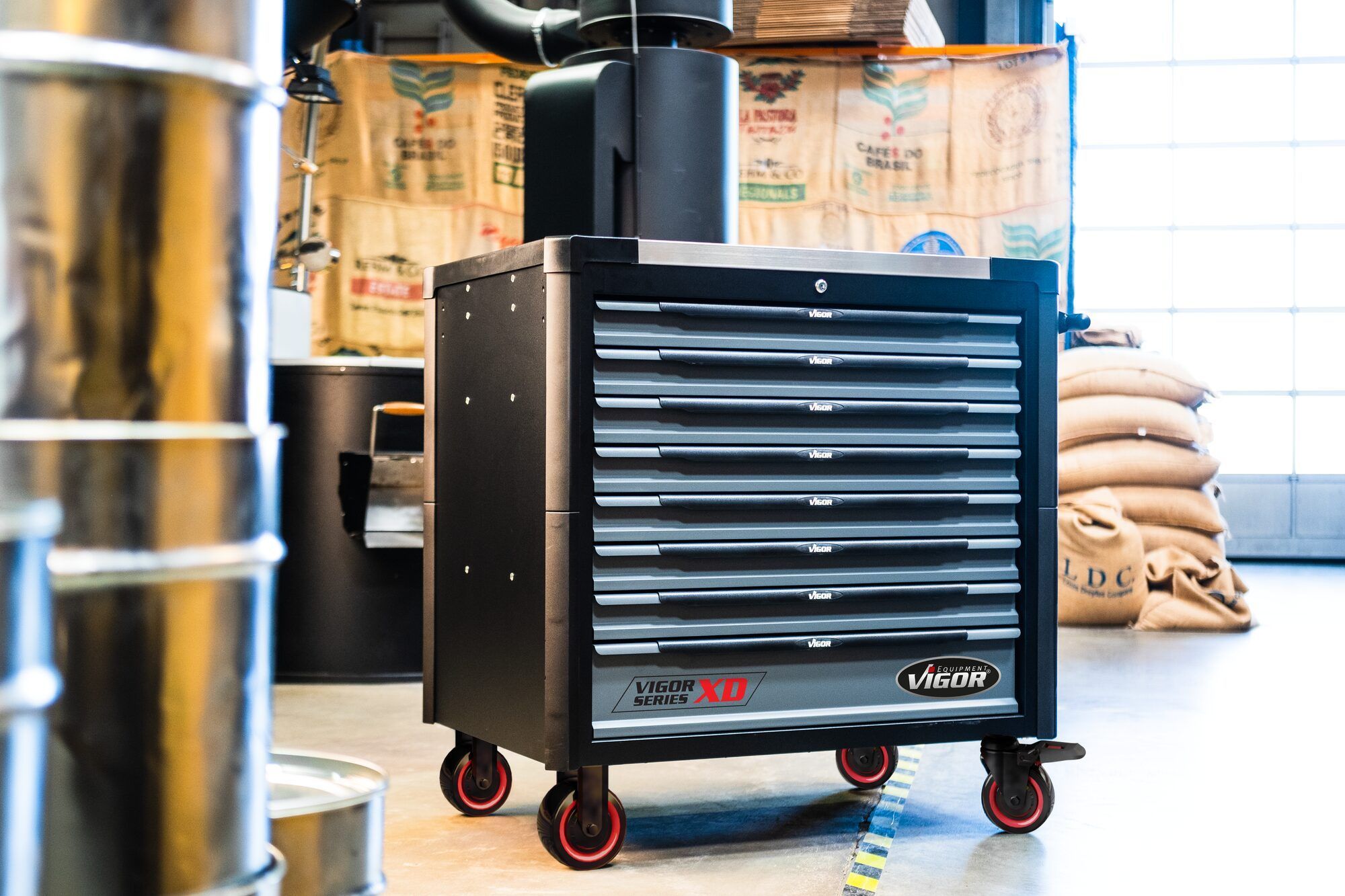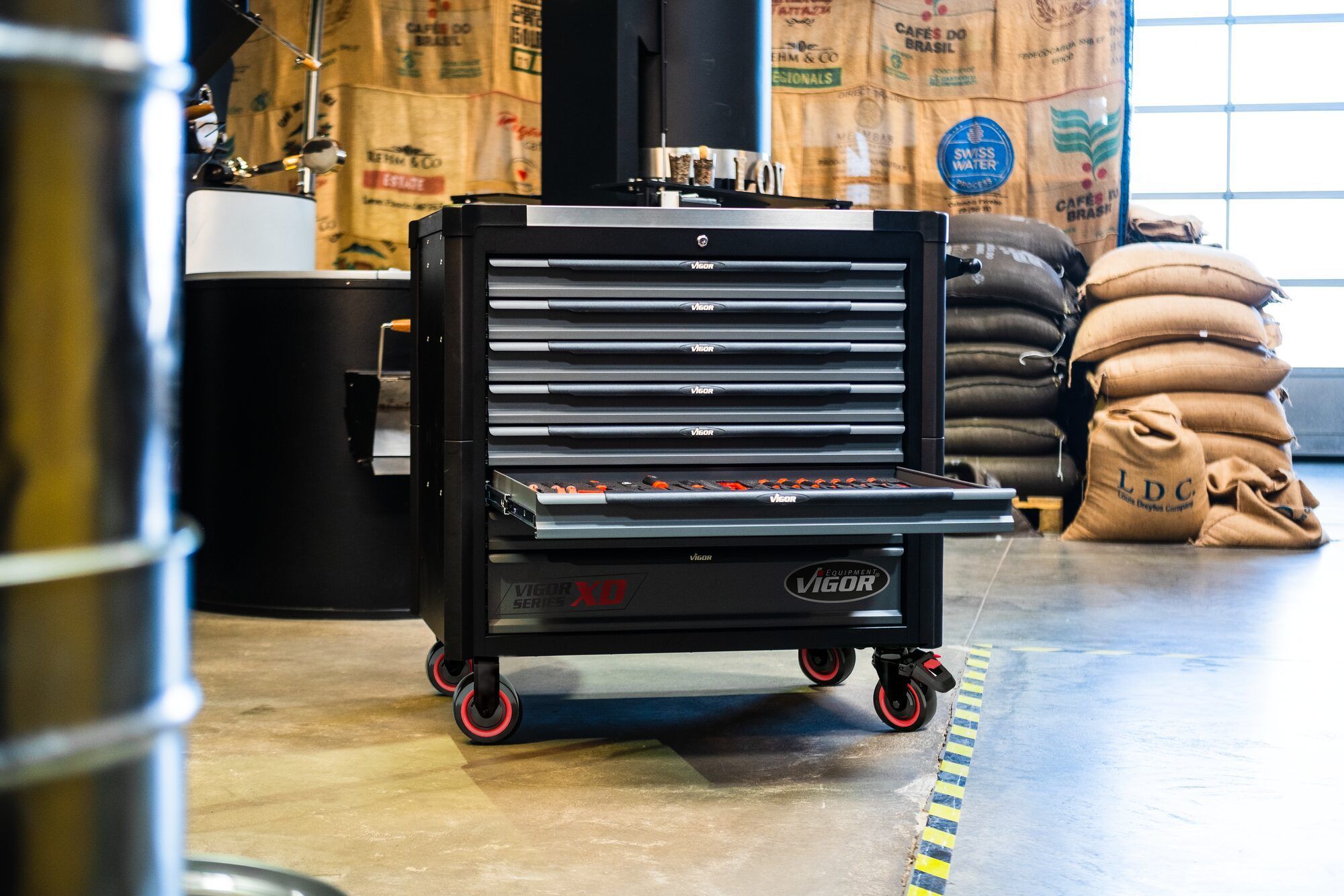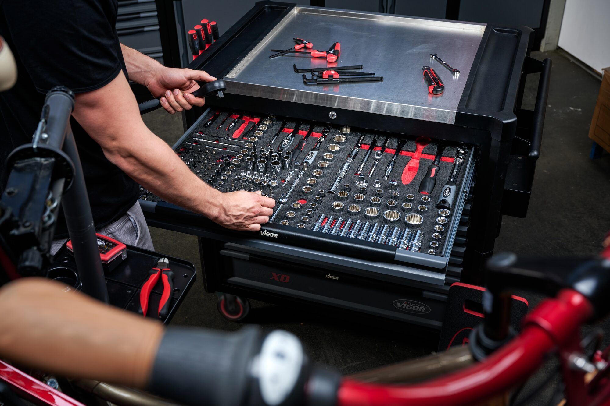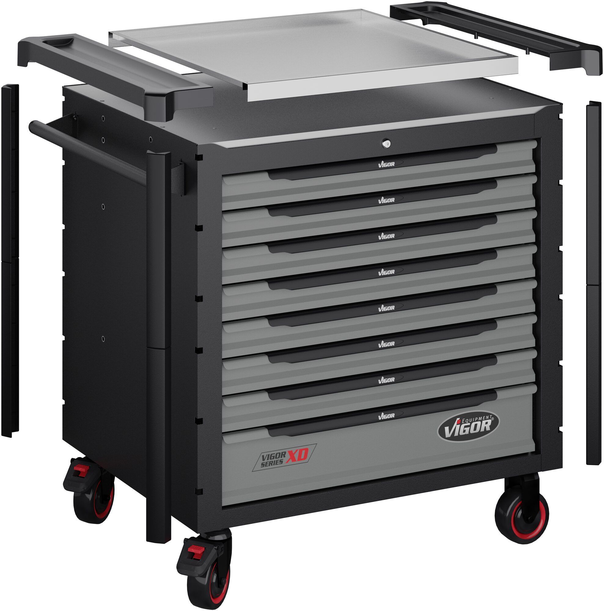 Vigor VIGOR Werkstattwagen Series XD extratief Edelstahl-Arbeitsplatte mit Sortiment