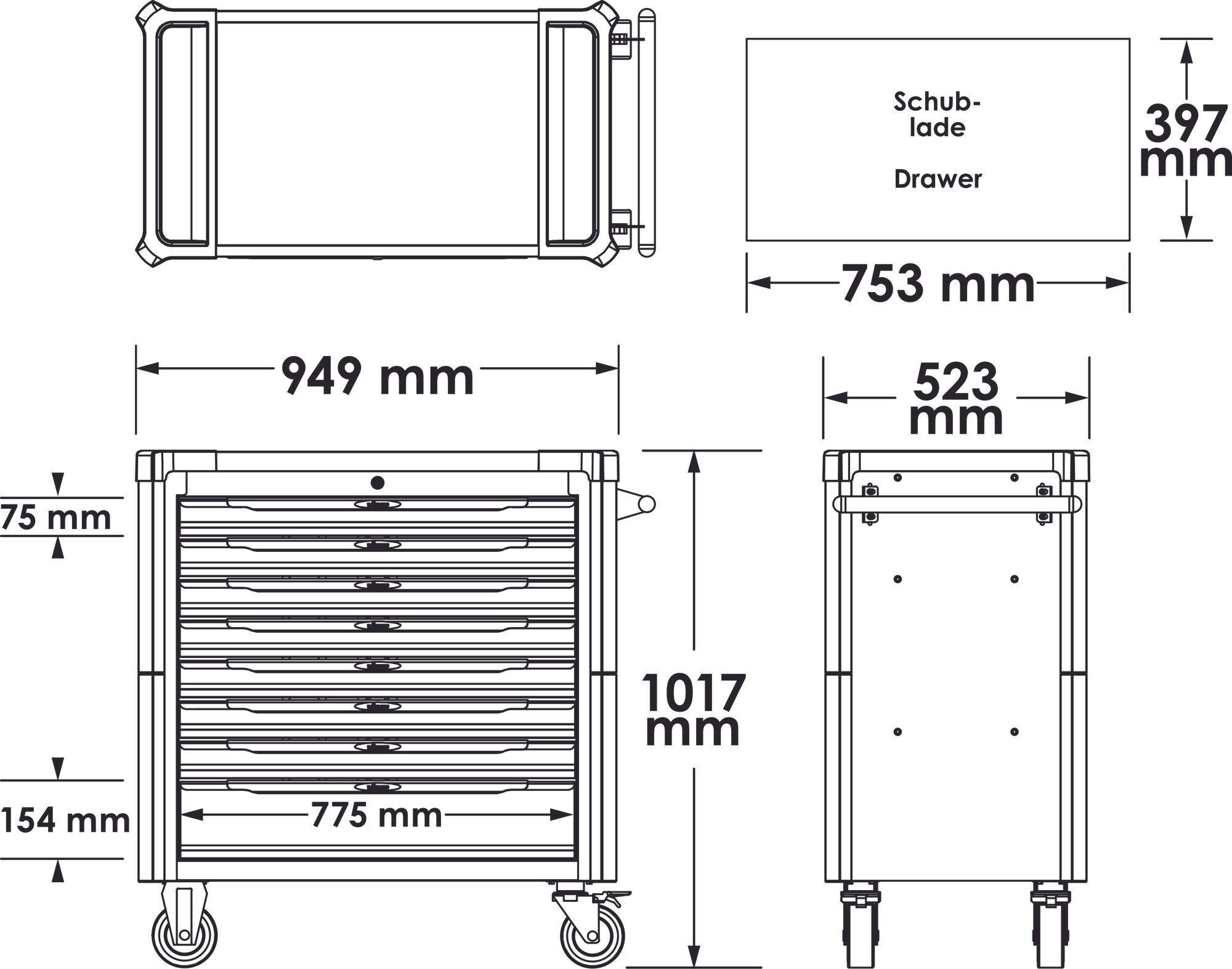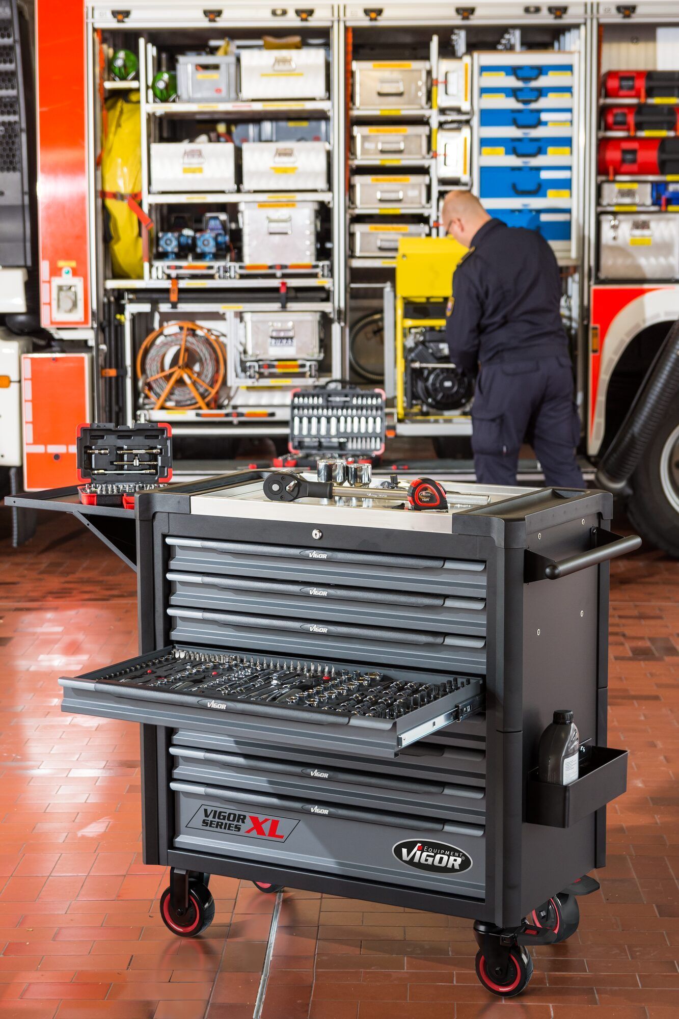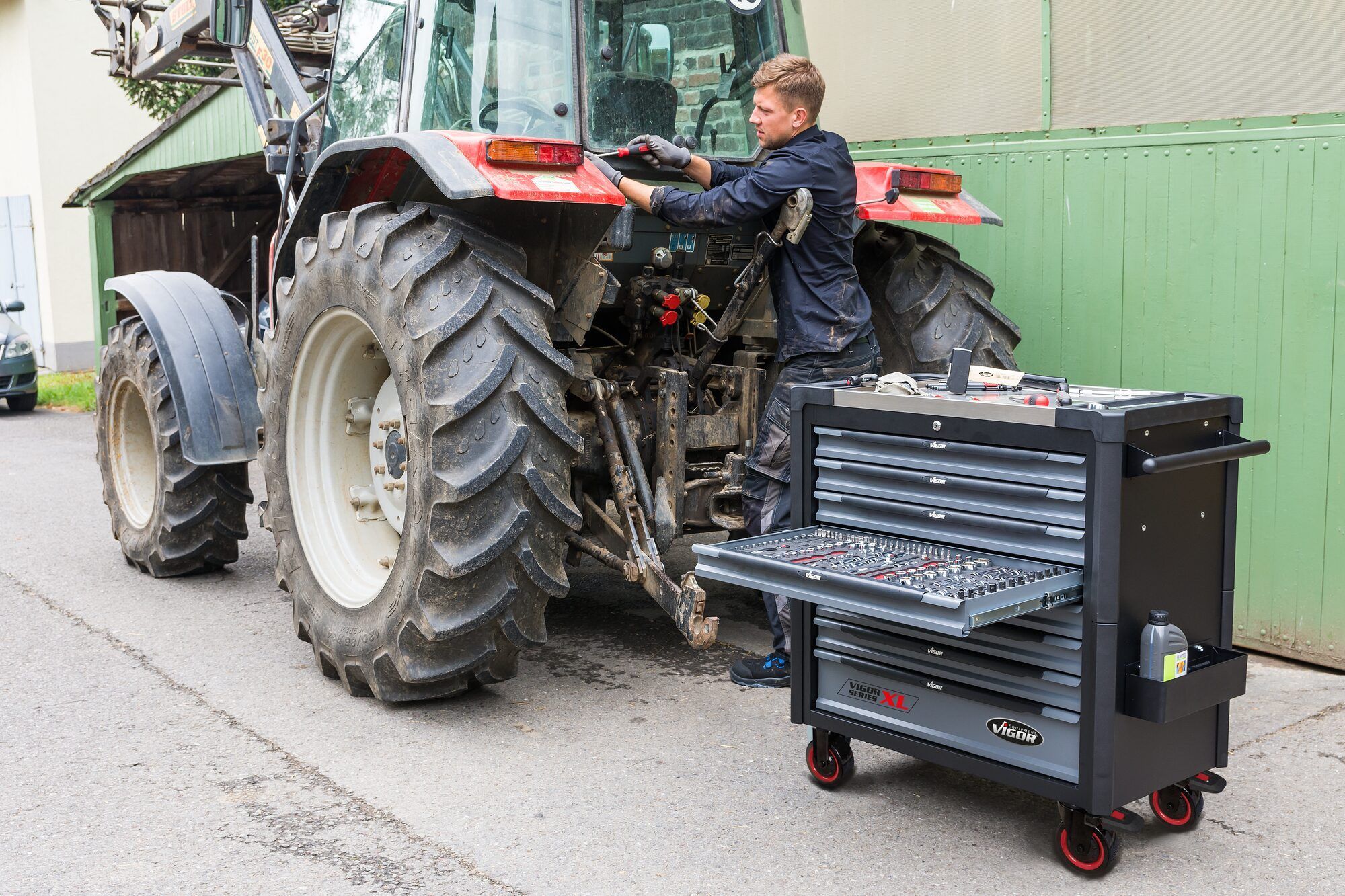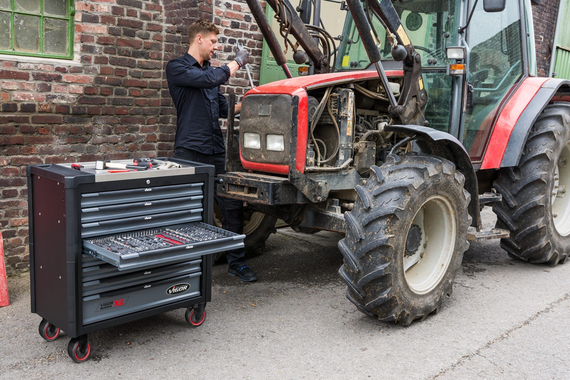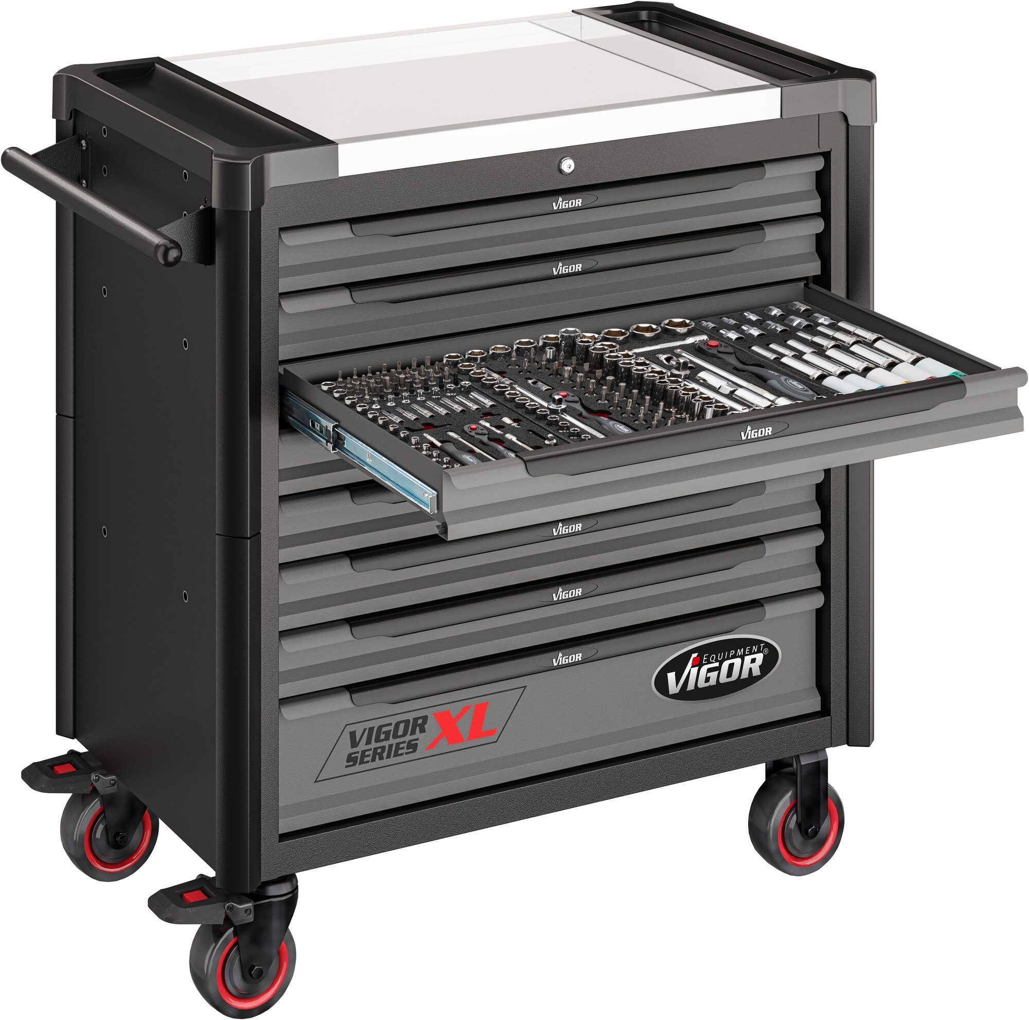 Vigor VIGOR Werkstattwagen Series XL Edelstahl-Arbeitsplatte mit Sortiment V4481/416