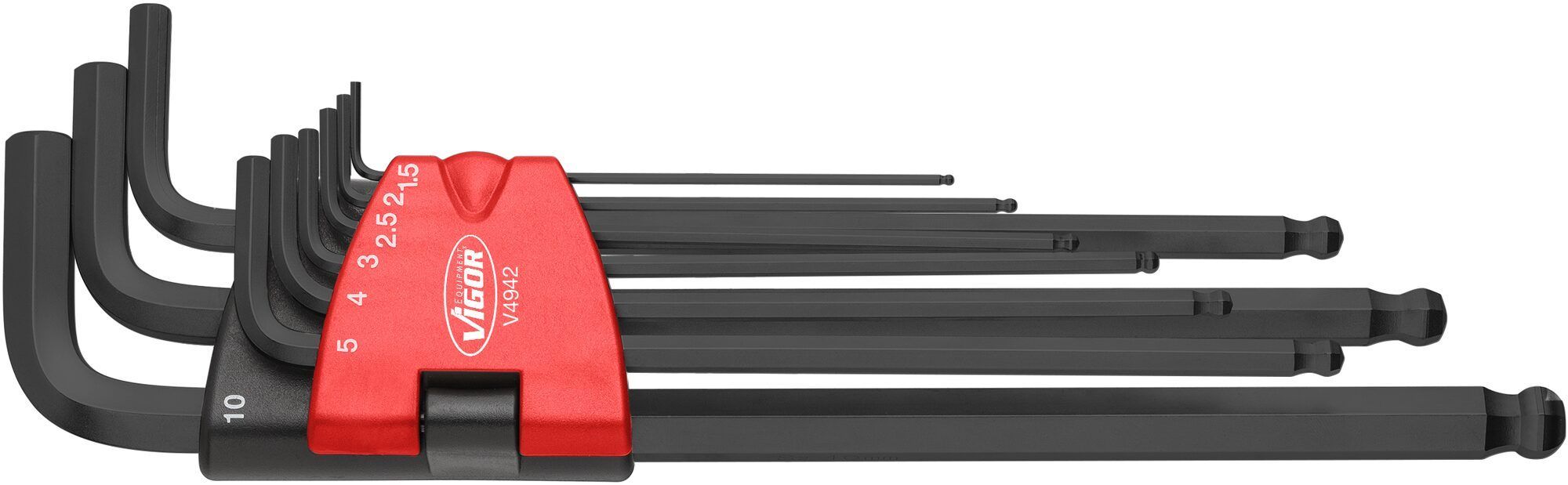 Vigor VIGOR Winkelschraubendreher Satz lang Kugelkopf V4942 Innen Sechskant Profil
