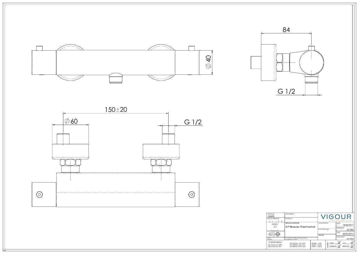Vigour Renovierungsset one verchromt mit Aufputz-Brausethermostat und Brausegarnitur bestehend aus: 1x AP-Brause-Thermostat one verchromt VIGOUR (ONTB) Aufputz-Thermostat-Brausebatterie DN 15 Durchflussmenge 22 l min gemessen bei 3 bar Fließdruck Armaturenkörper: entzinkungsarmes Messing (MS63), ver