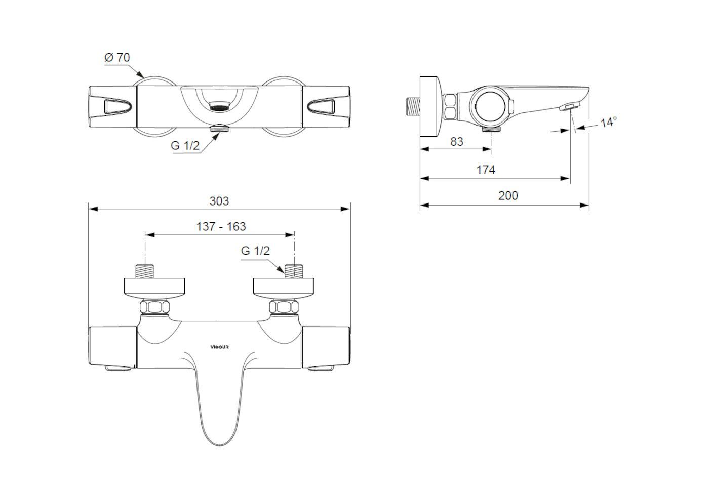 Vigour Vigour Clivia Aufputz Bade Thermostat Wanne ohne Brausegarnitur verchromt