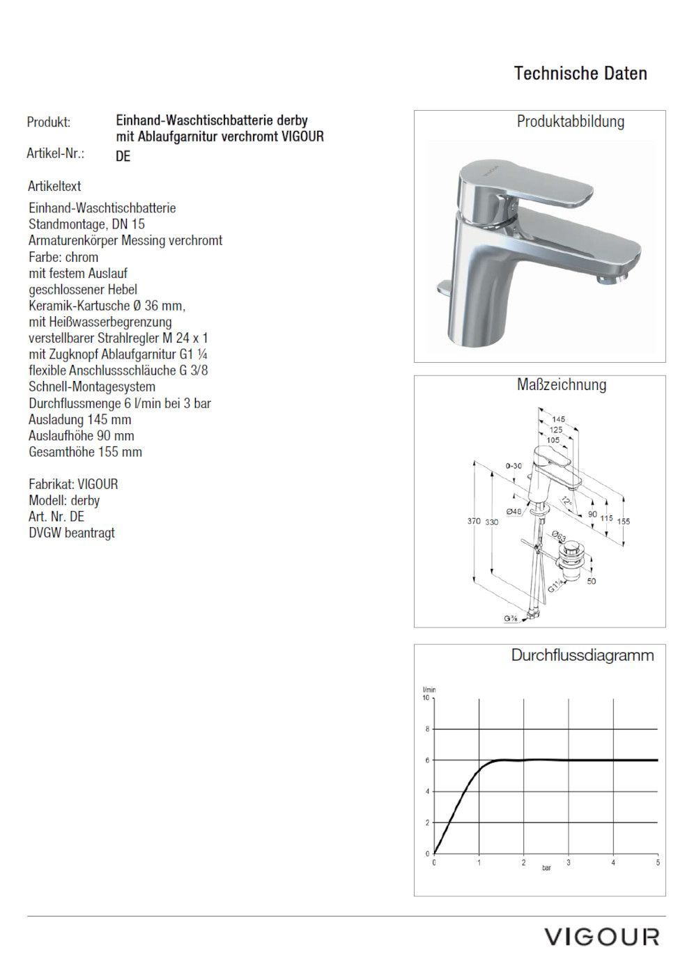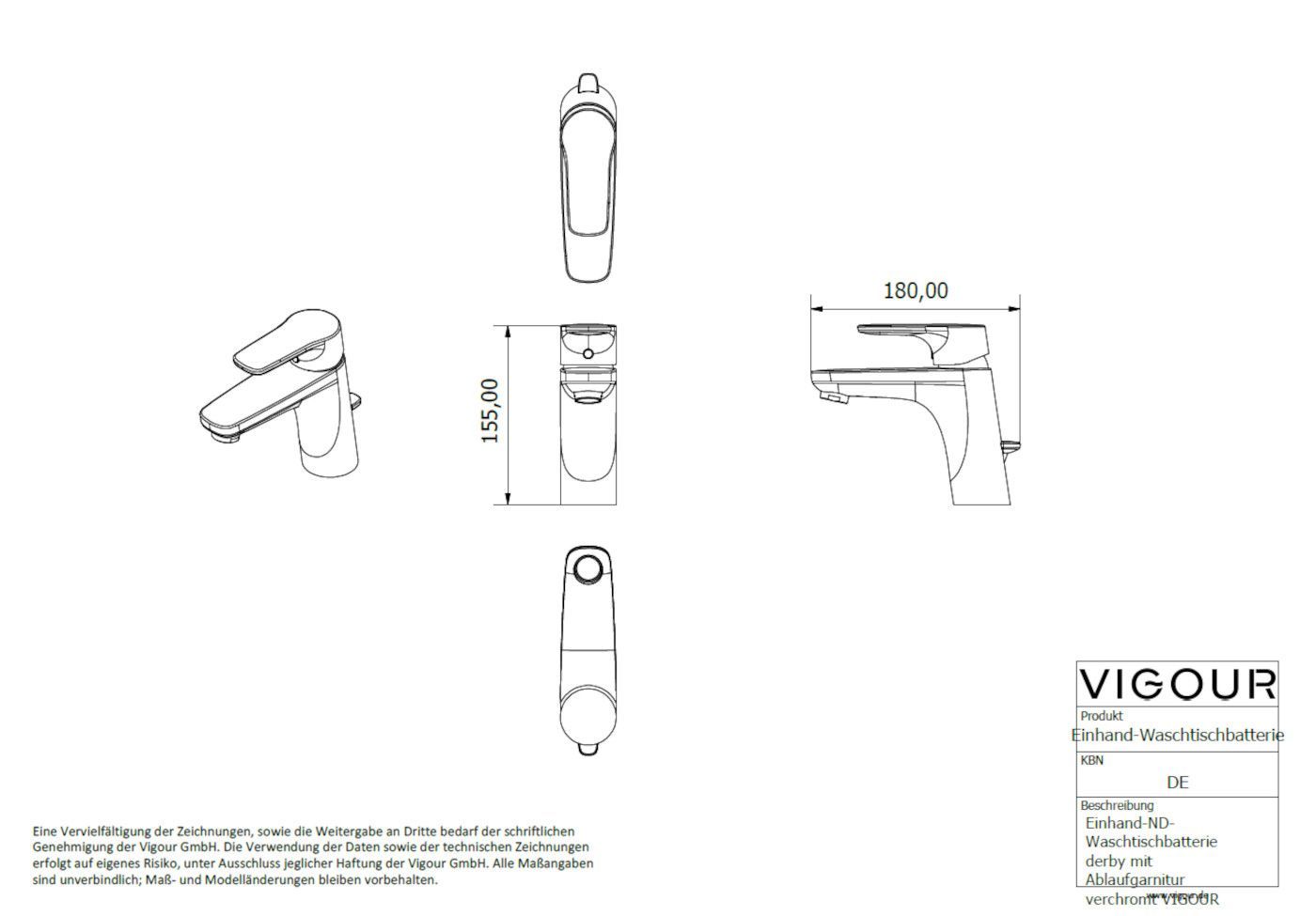 Vigour Vigour Derby Einhand Einhebel Waschtischbatterie mit Ablaufgarnitur verchromt
