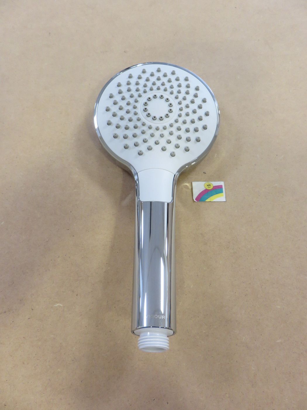 Vigour Handbrause individual 2.2 verchromt 3-strahlig rund Durchmesser 120 mm, rund Durchfluss bei 3bar (Hauptfunkt.)10l min Anschlussgewinde 1 2 Grundkörper aus Kunststoff, verchromt Strahlplatte Kunststoff, weiss Silikon- Antikalknoppen, grau naturtrüb geprüft nach KTW-W270 3-strahlig (Regen-,Akti
