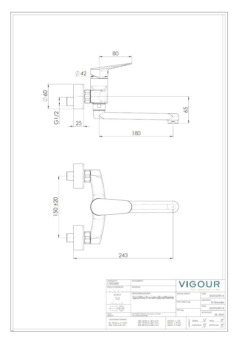 Vigour Vigour One Spültisch Küchen Wand Schwenk Armatur Einhand Spültischwandbatterie