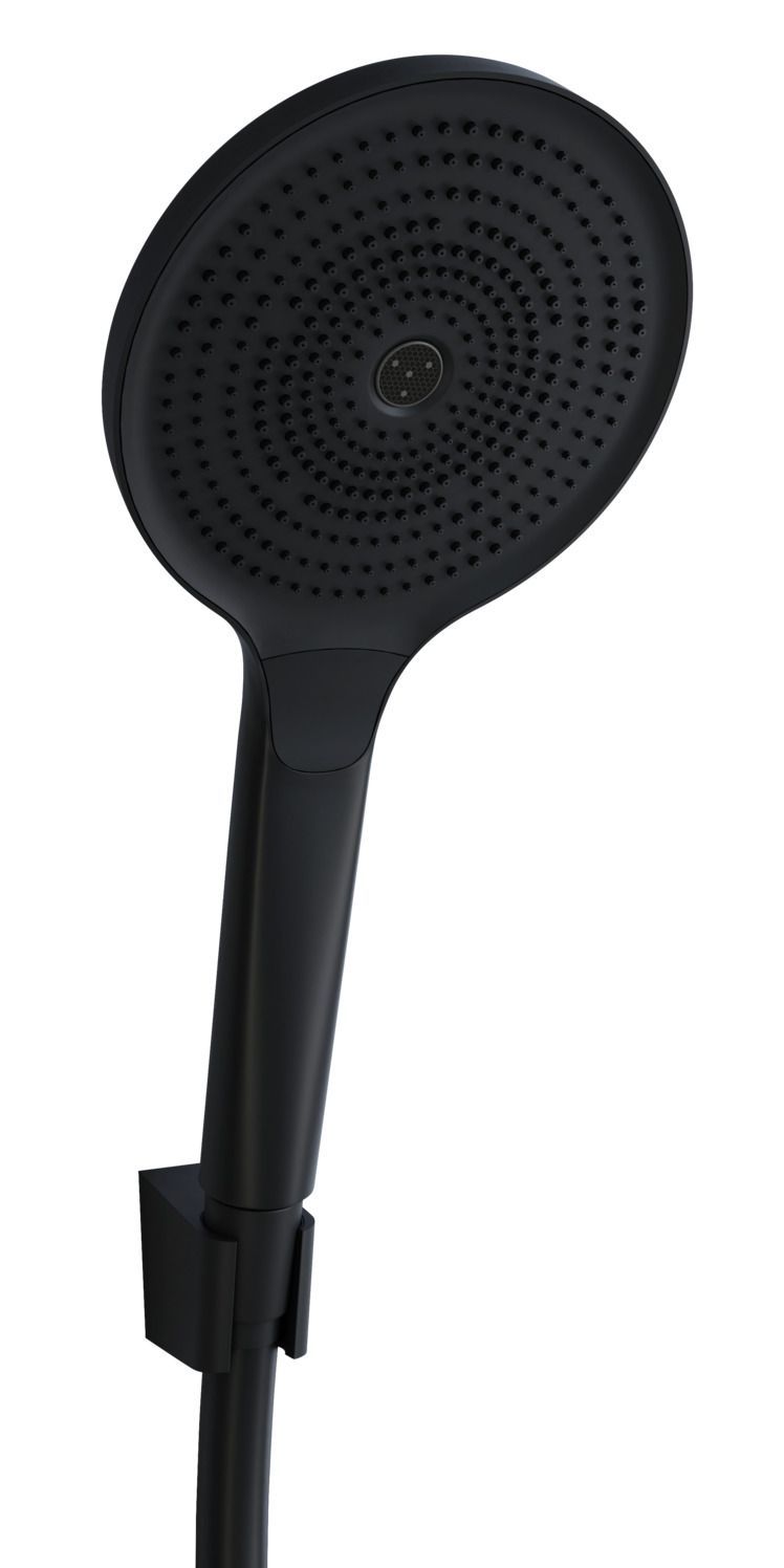 Vigour Wannenset individual 3.2 Wandhalter + Schlauch + Handbrause 3-strahlig rund schwarz matt Wannen-Set, bestehend aus: hochwertiger Wandbrausehalter aus Metall schwarz matt, inkl. Befestigungssatz Oberflächenschutz für Brauseschlauchkonus Handbrause: Durchmesser 130 mm, rund Durchfluss bei 3bar