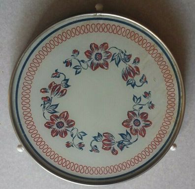 • Kuchenplatte drehbar Metall mit Glasplatte 50er Jahre Blumen Vintage Ø30cm