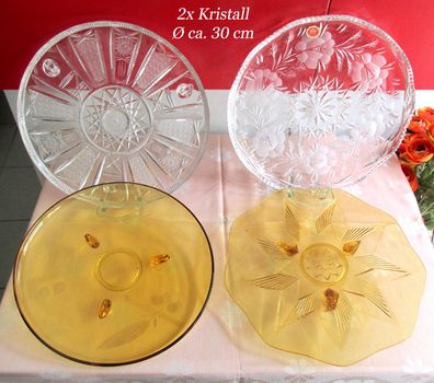 • Omas schöne alte Kuchenplatten / Vorlegeplatten aus Glas & Kristall * Vintage