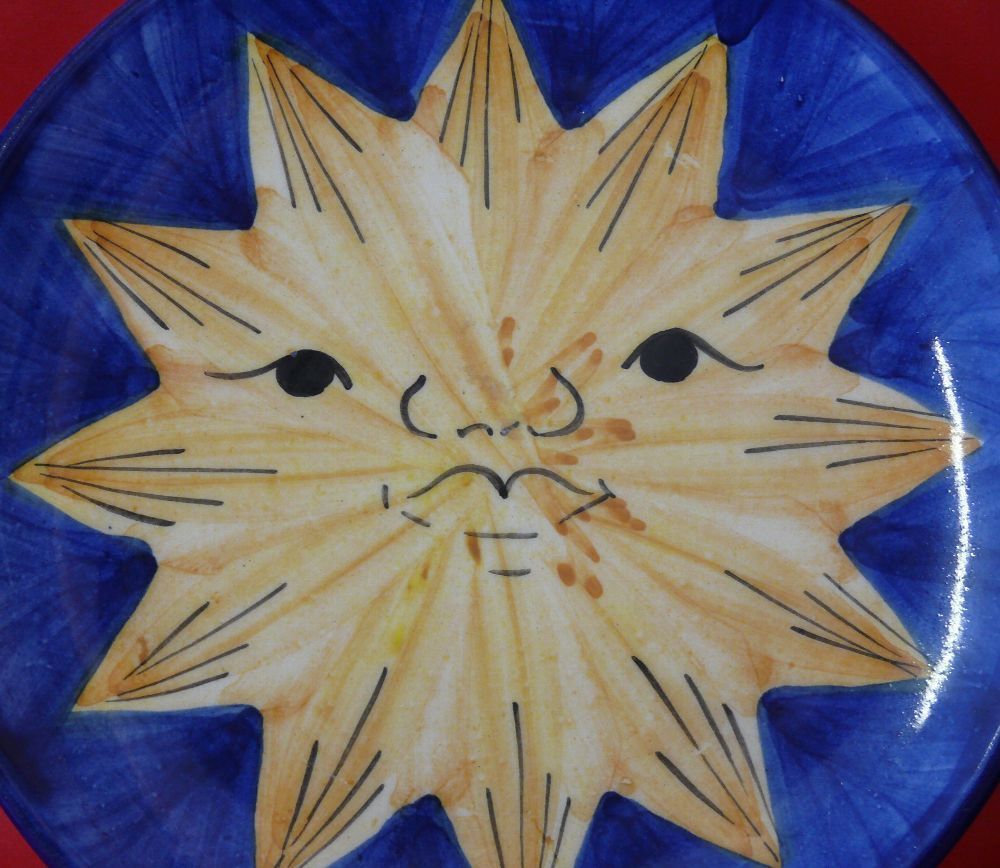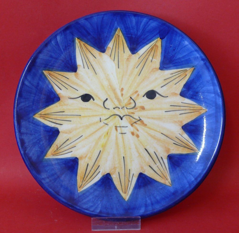 Vintage ausgefallene Keramik Hnos. Martinez S. L. Wandteller Sonne und Katzengesicht