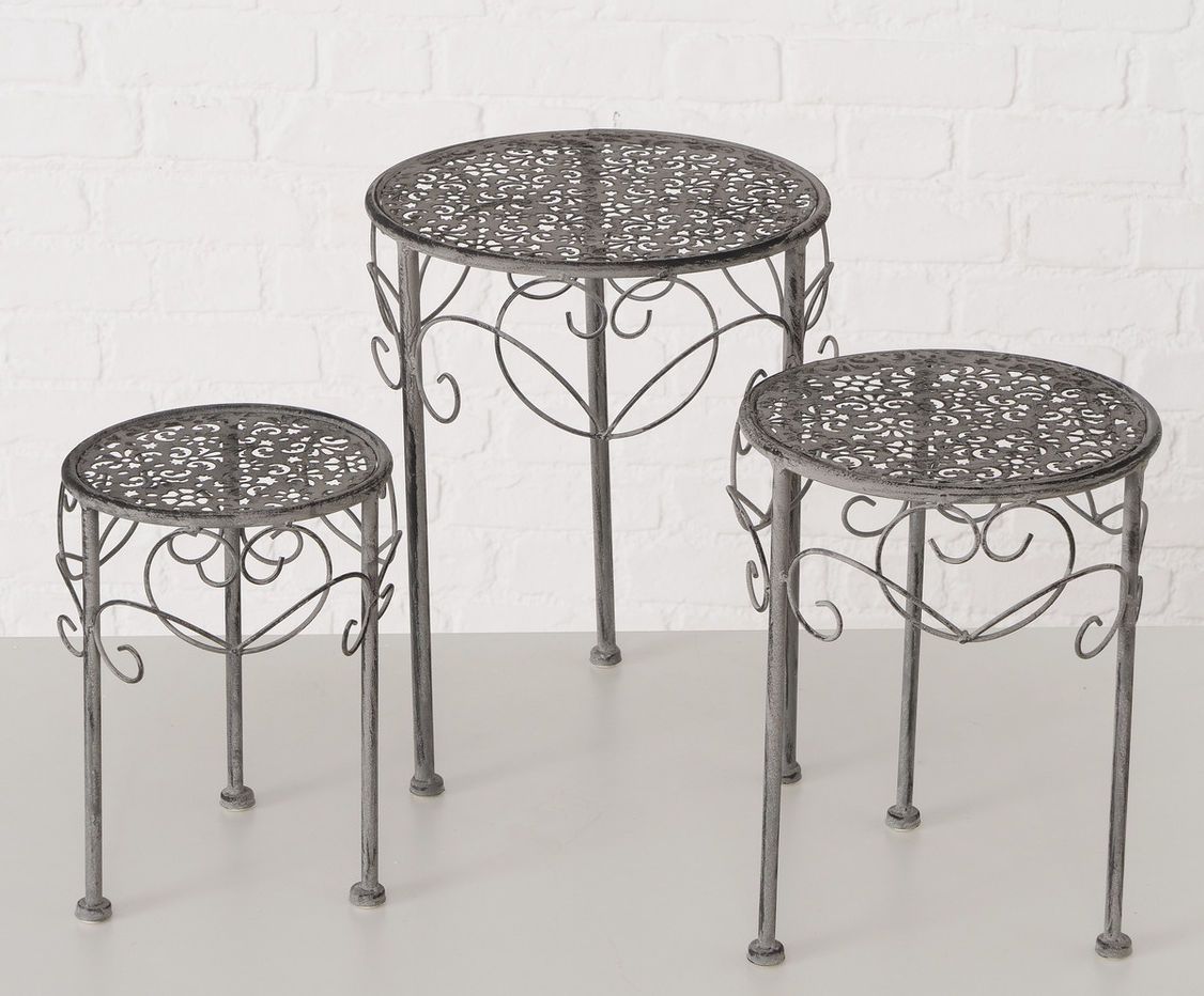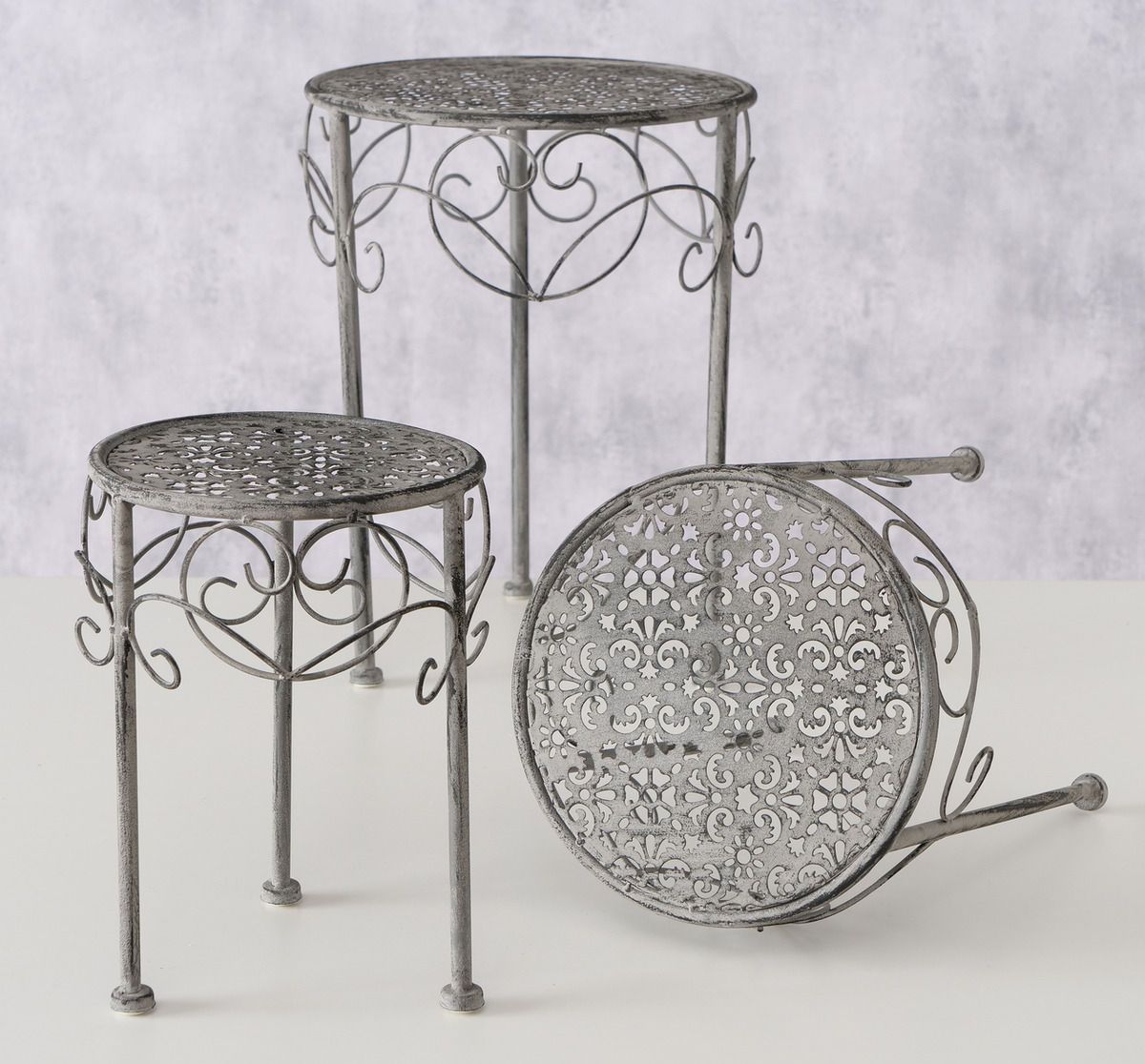 Vintage Blumen Hocker 3er Set - grau - Pflanzen Ständer Deko Beistell Tisch