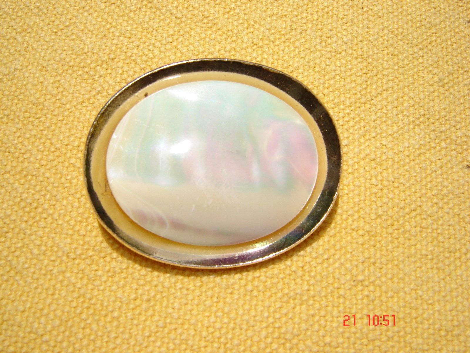 Vintage Brosche oval goldfarben mit Kunststein perlmutt ca 4,3 x 3,4 cm Z p