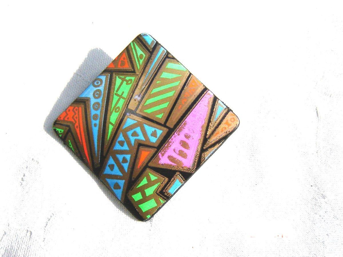 Vintage Brosche Quadrat 90er Jahre Neon leicht Kunststoff ca 6,5cm lang