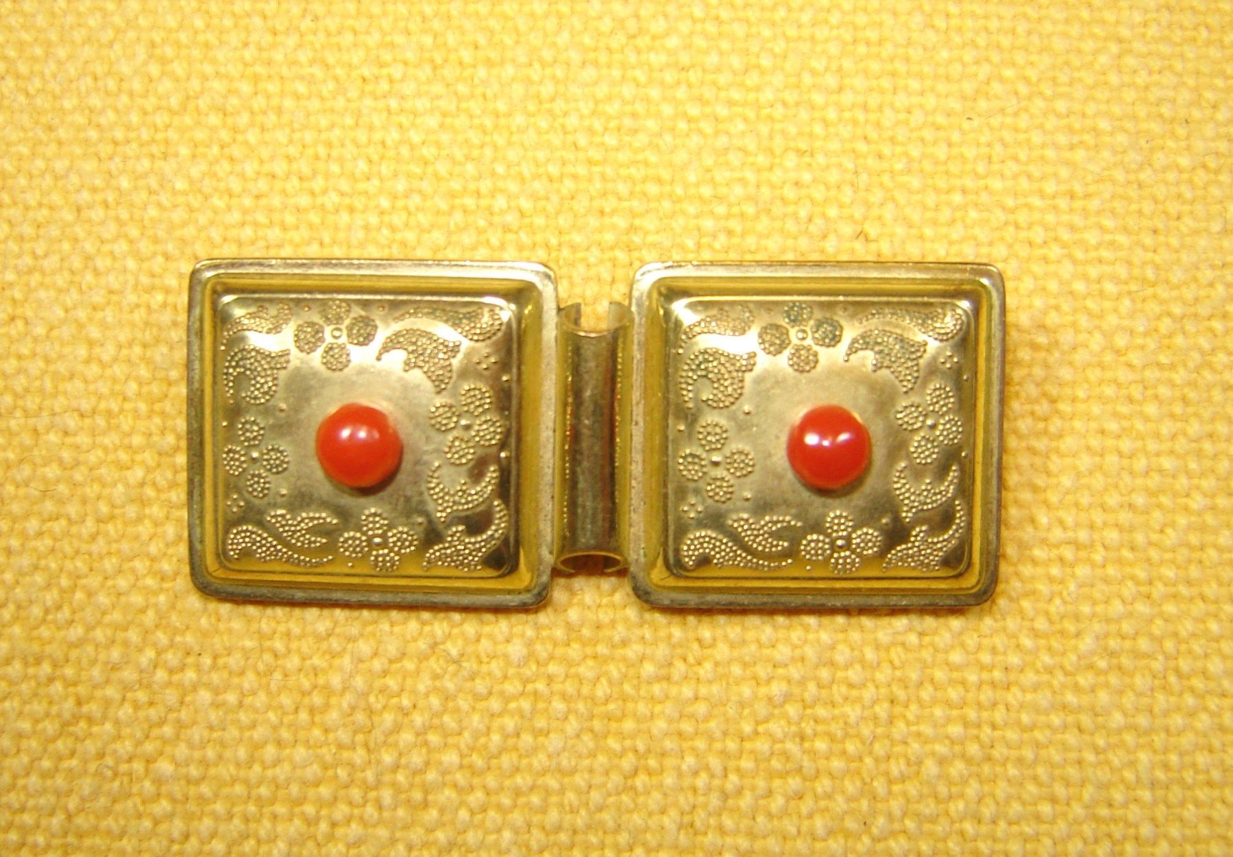 . ausgefallene Vintage Brosche Brosche rechteckig ca 2,5 x 5 cm aus Metall sehr schön ausgearbeitet mit feiner Verzierung und korallefarbenen Perlen in Farbe gold ausgezeichnet verarbeitet , aus deutscher Herstellung Auflösung einer kleinen alten Schmuckfabrik . Bitte Sehen Sie sich hier alle meine