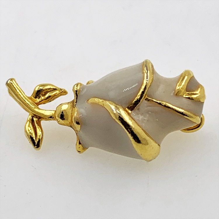 Vintage Brosche "Rose" mit Emaille - goldplattiert