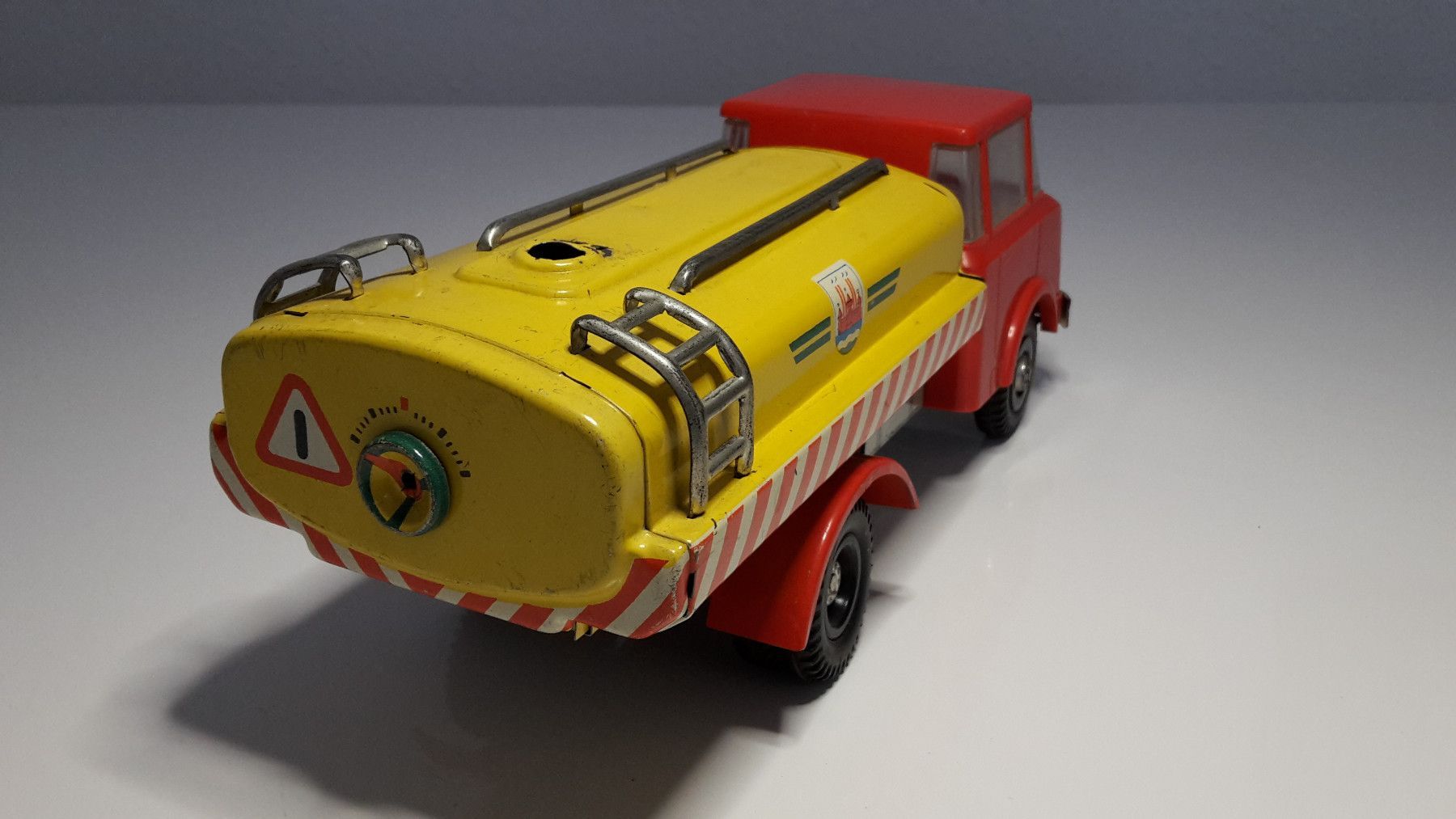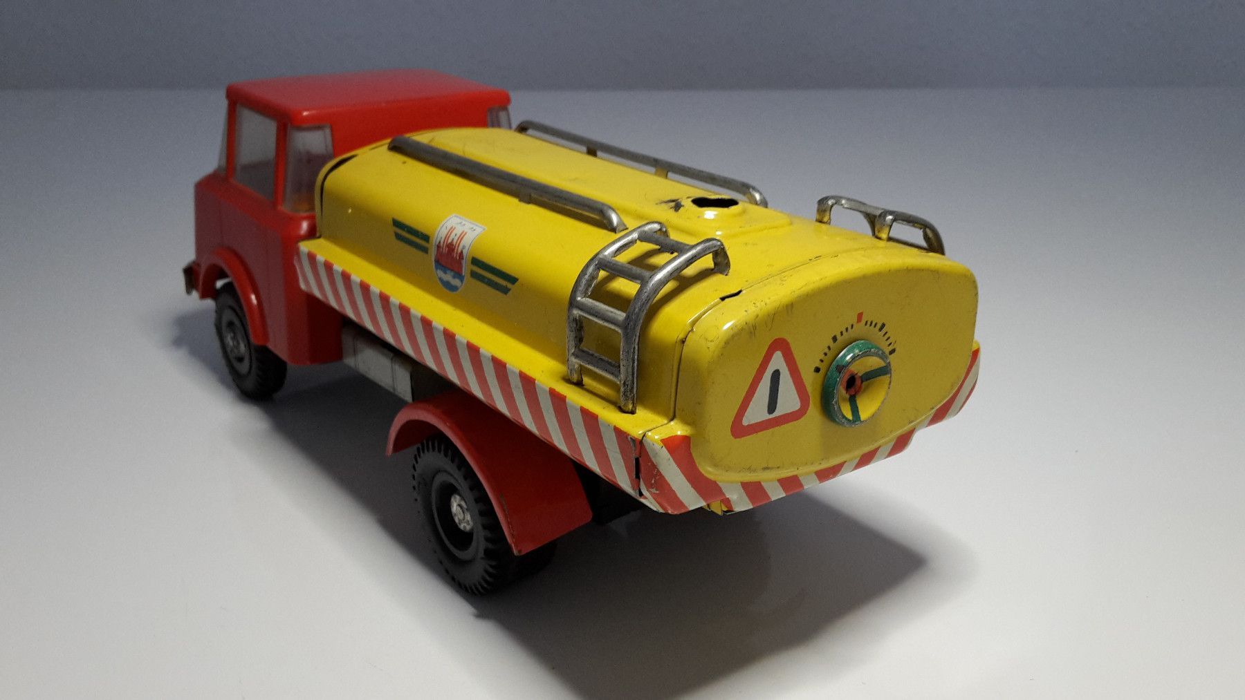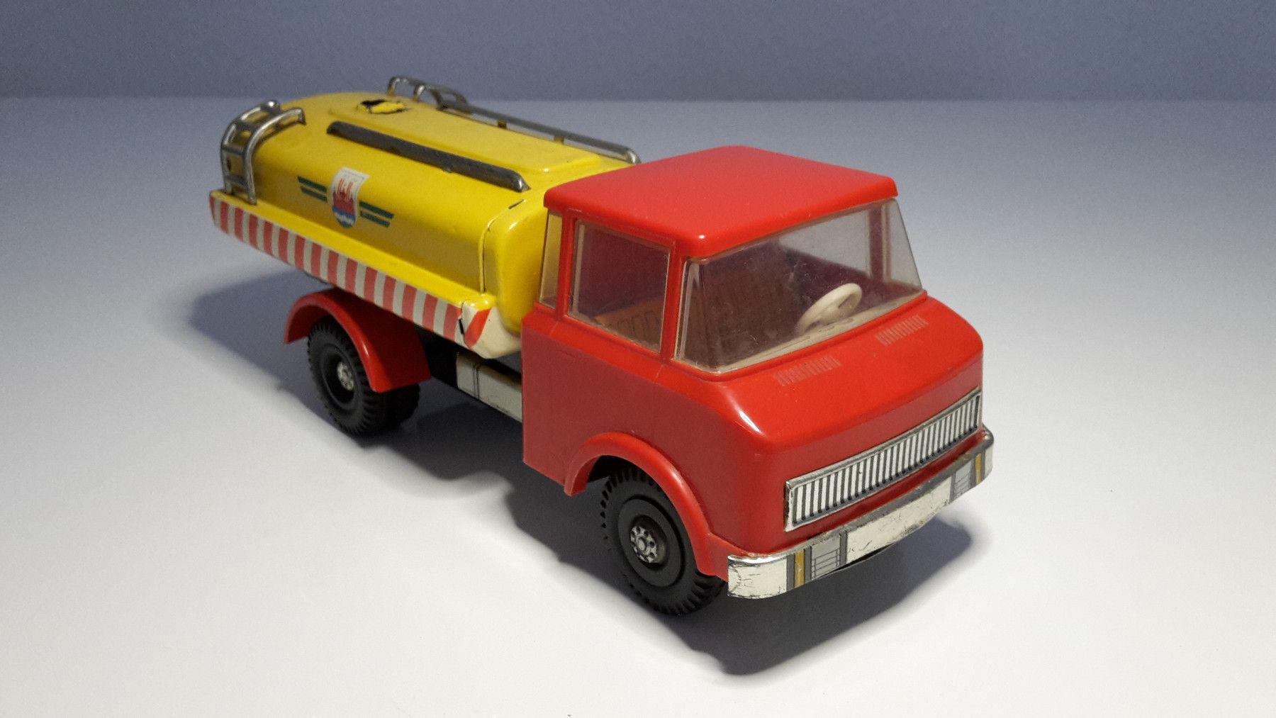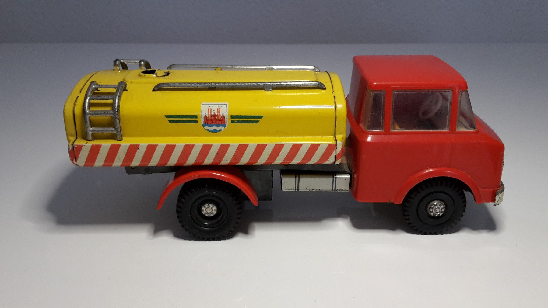 Dieser liebevoll erhaltene Tankwagen ist ein originales Blechspielzeug aus der ehemaligen DDR, hergestellt vom renommierten Spielzeughersteller MS Brandenburg (Martin Seidel) in den 1970er Jahren.