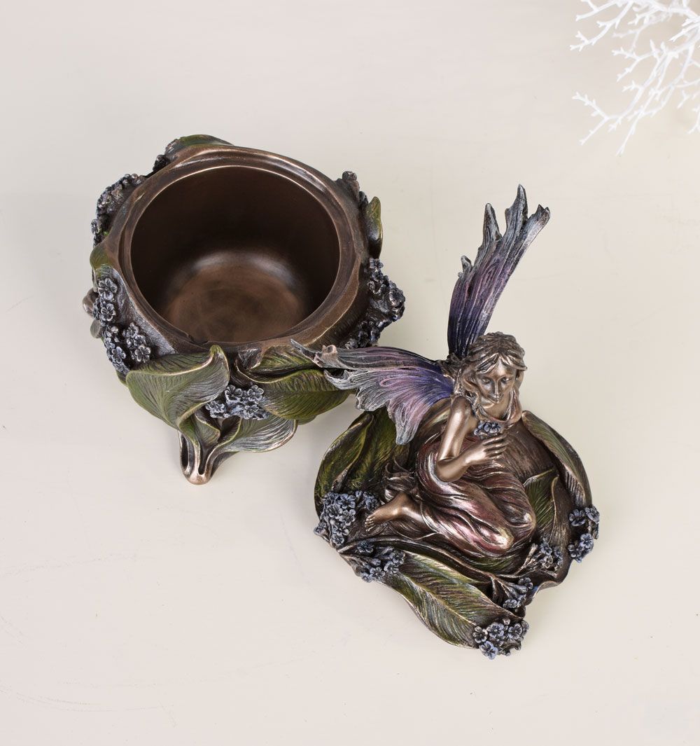 Vintage Deckeldose Elfe Fee Jugendstil Schmuckschatulle