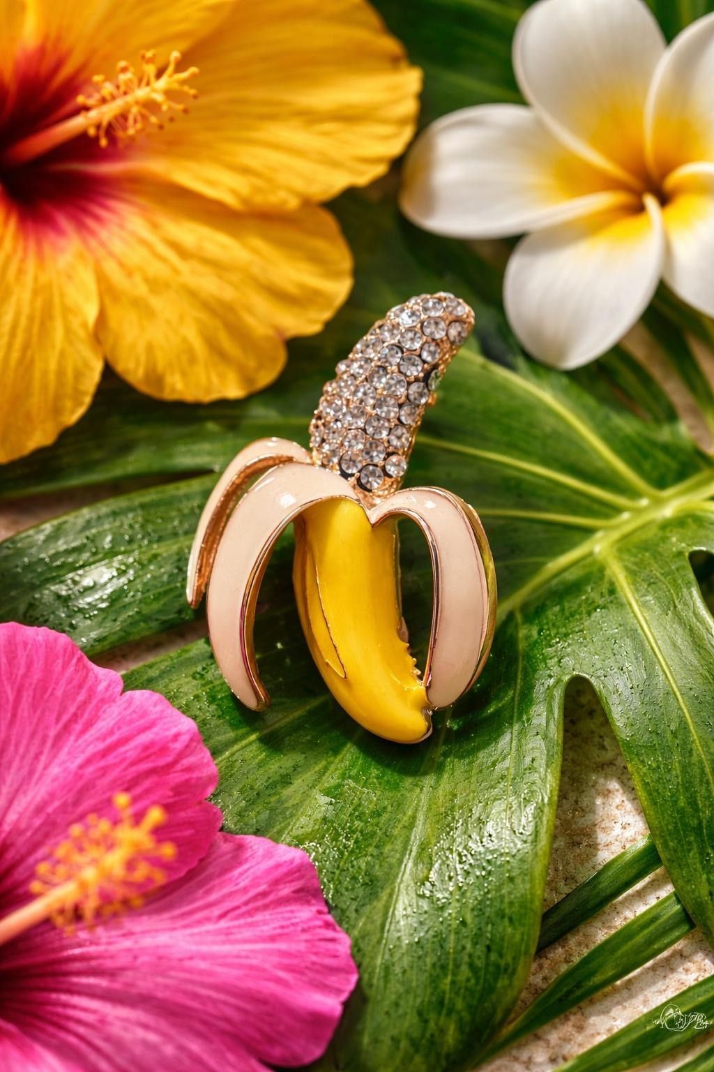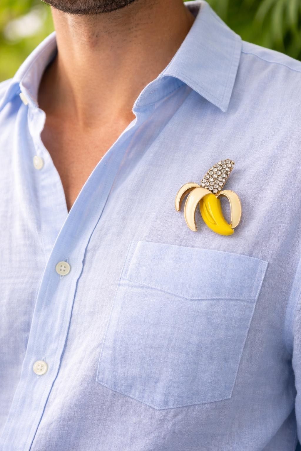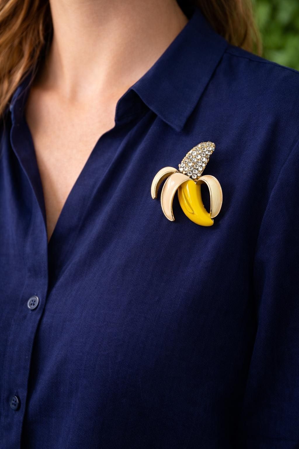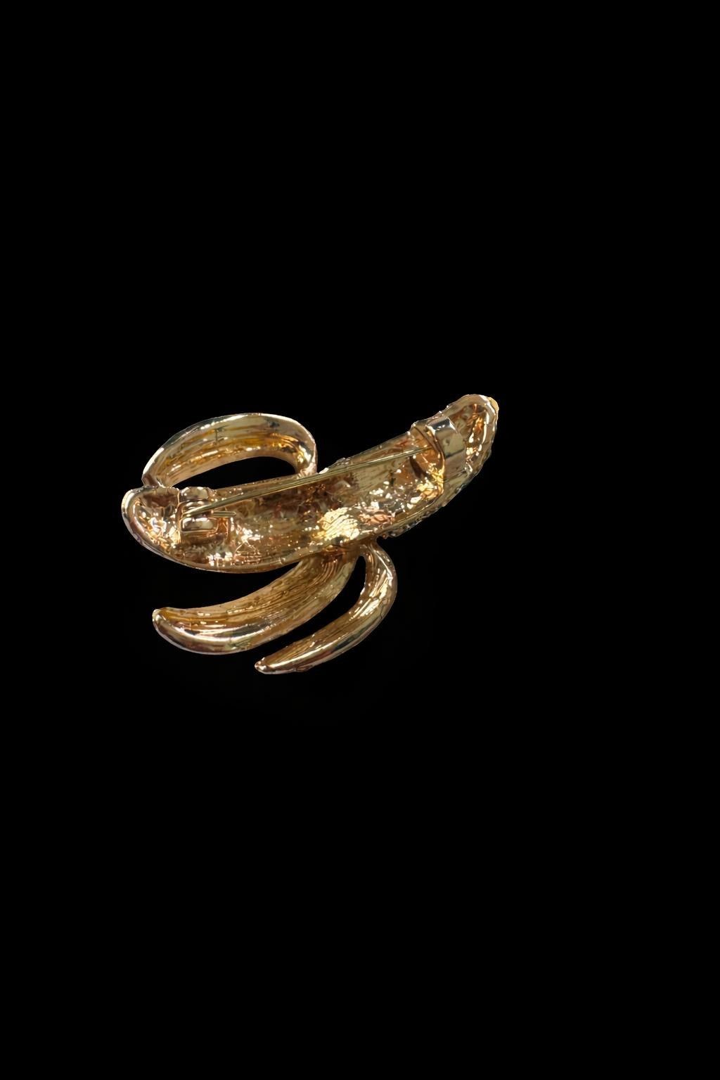 Vintage Emaille Brosche Banane mit Strasssteinen