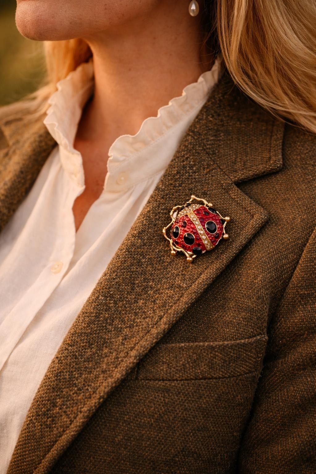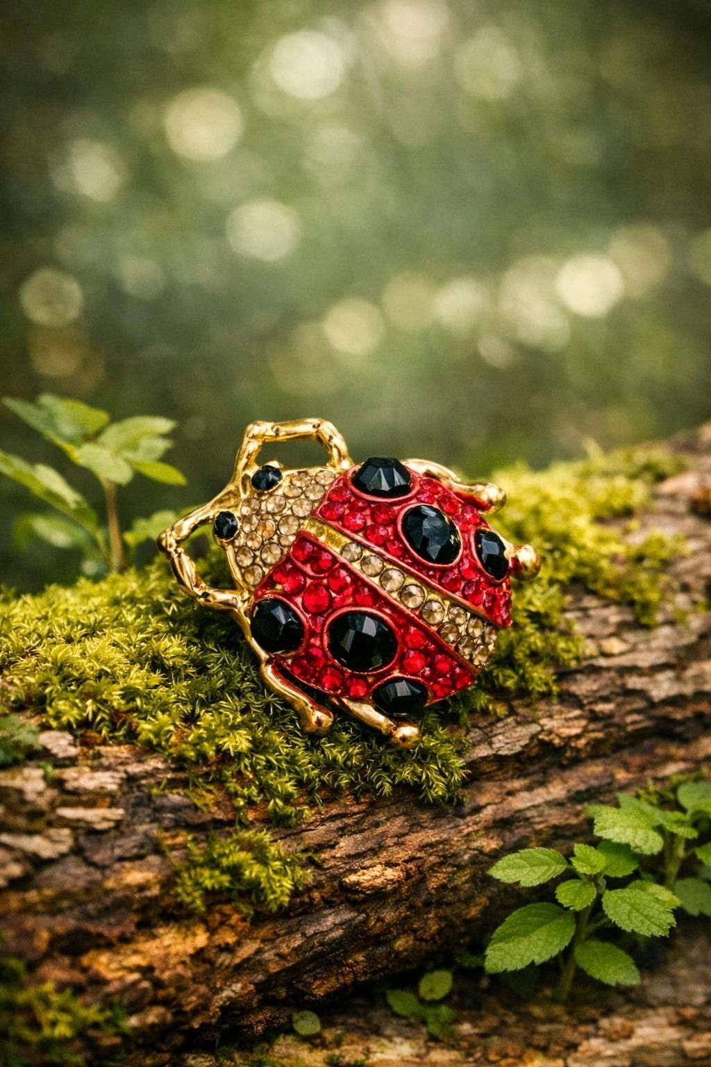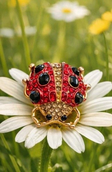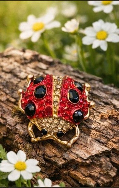 Vintage Emaille Brosche Marienkäfer mit Strasssteinen