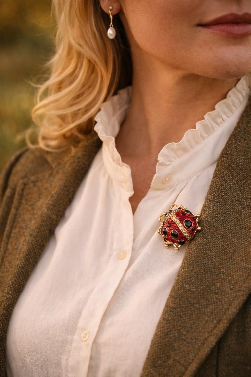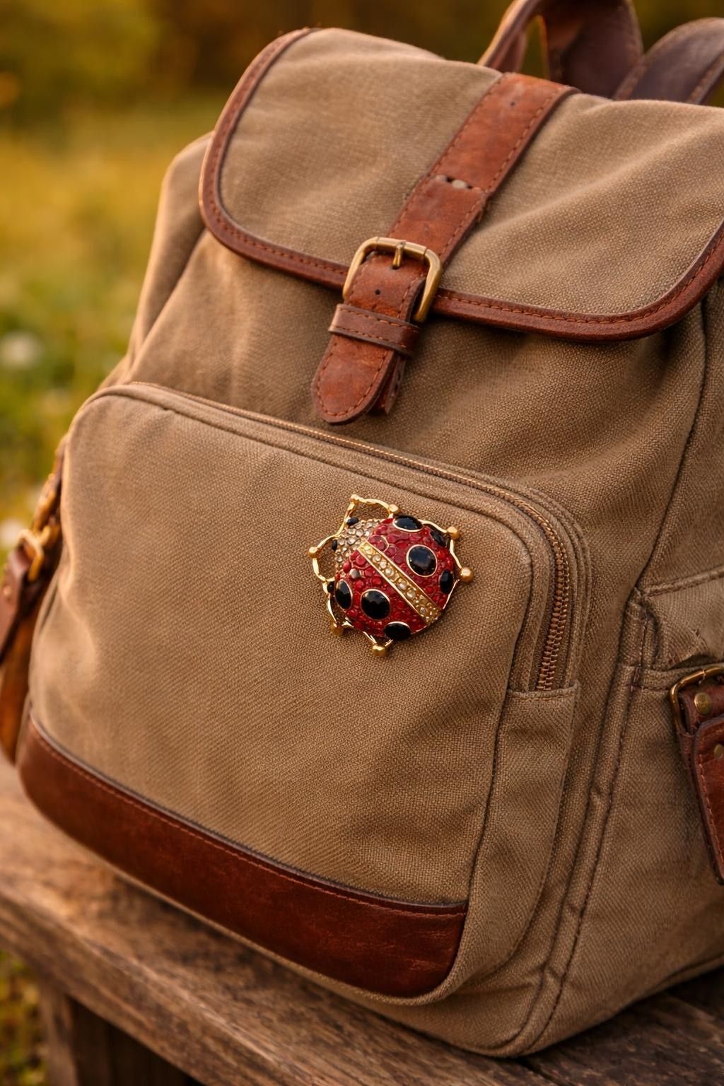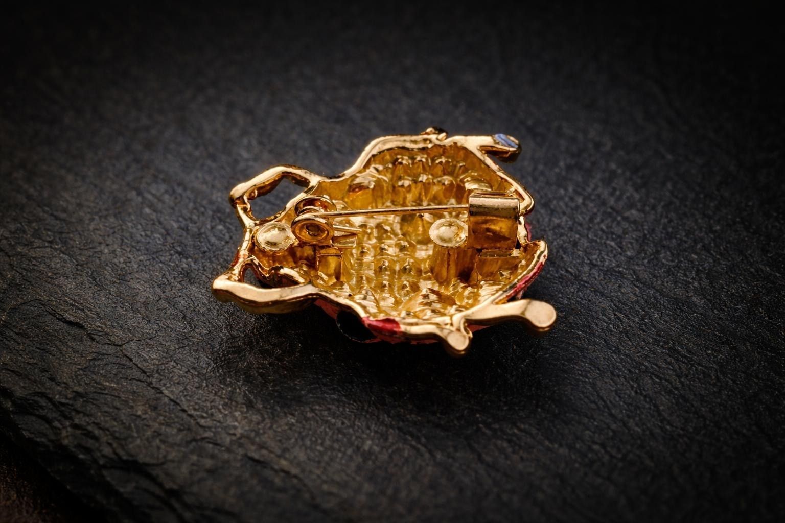 Vintage Emaille Brosche Marienkäfer mit Strasssteinen