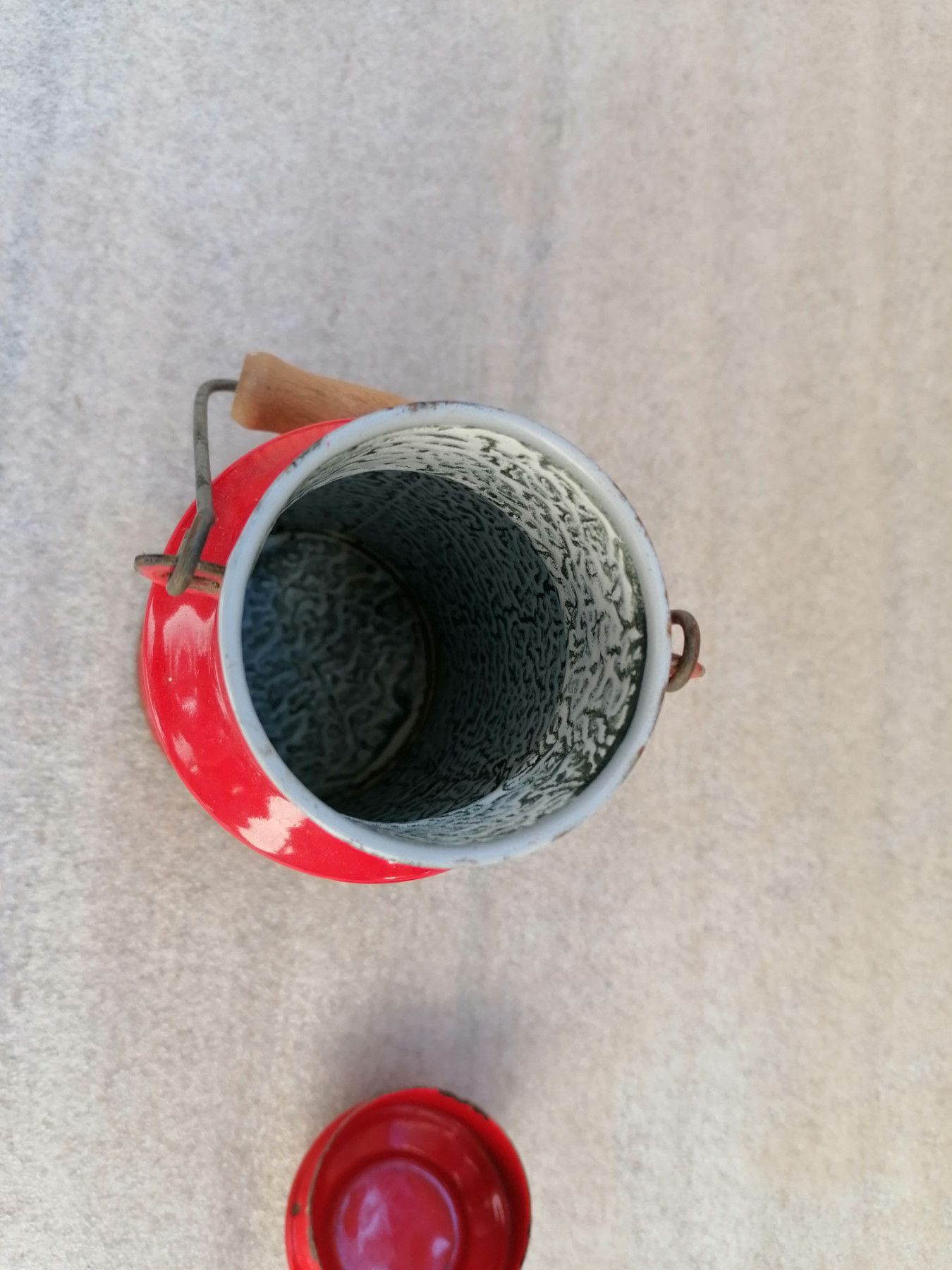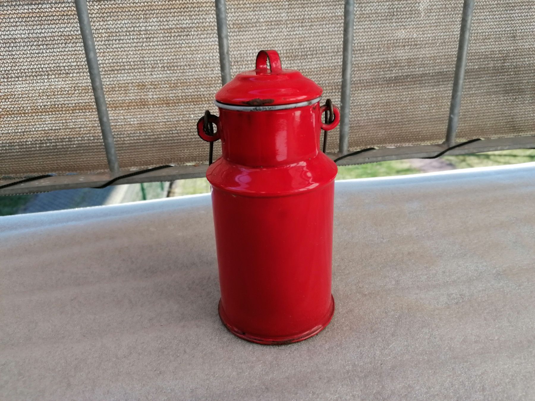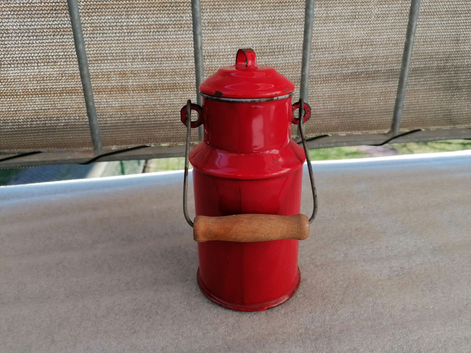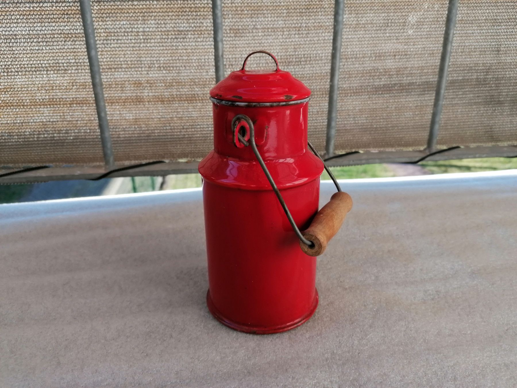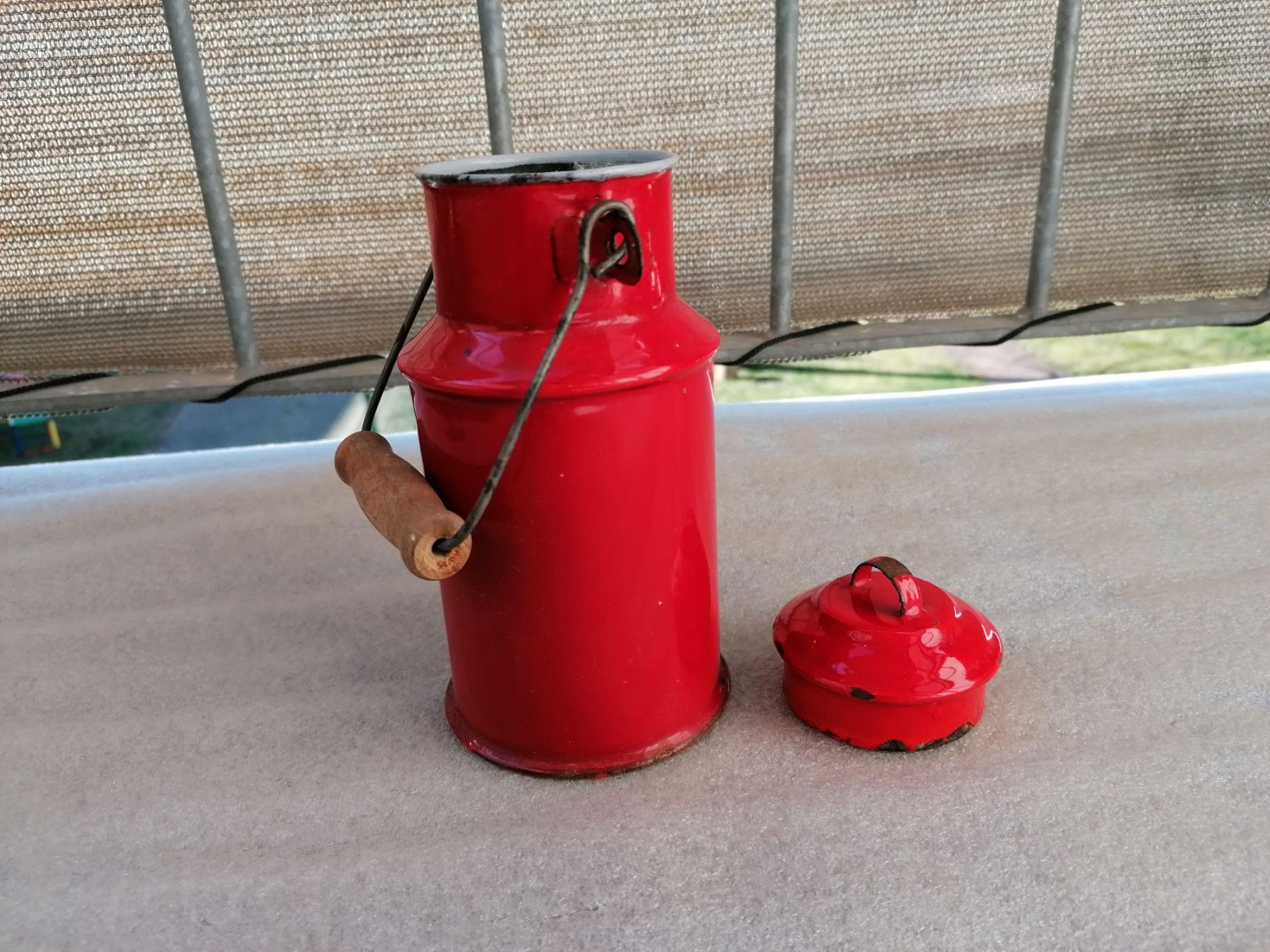 Vintage Emaillierte Milchkanne in Rot 60er Jahre