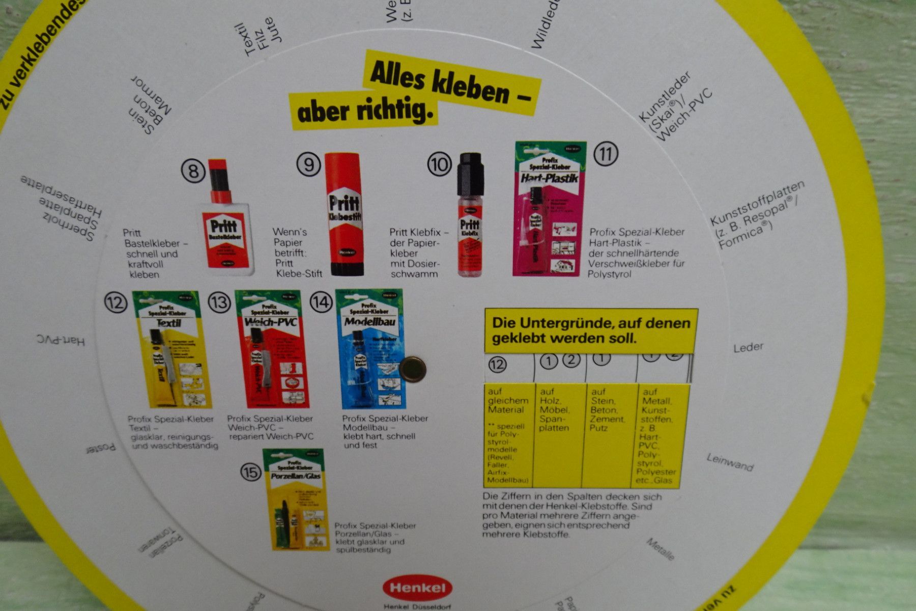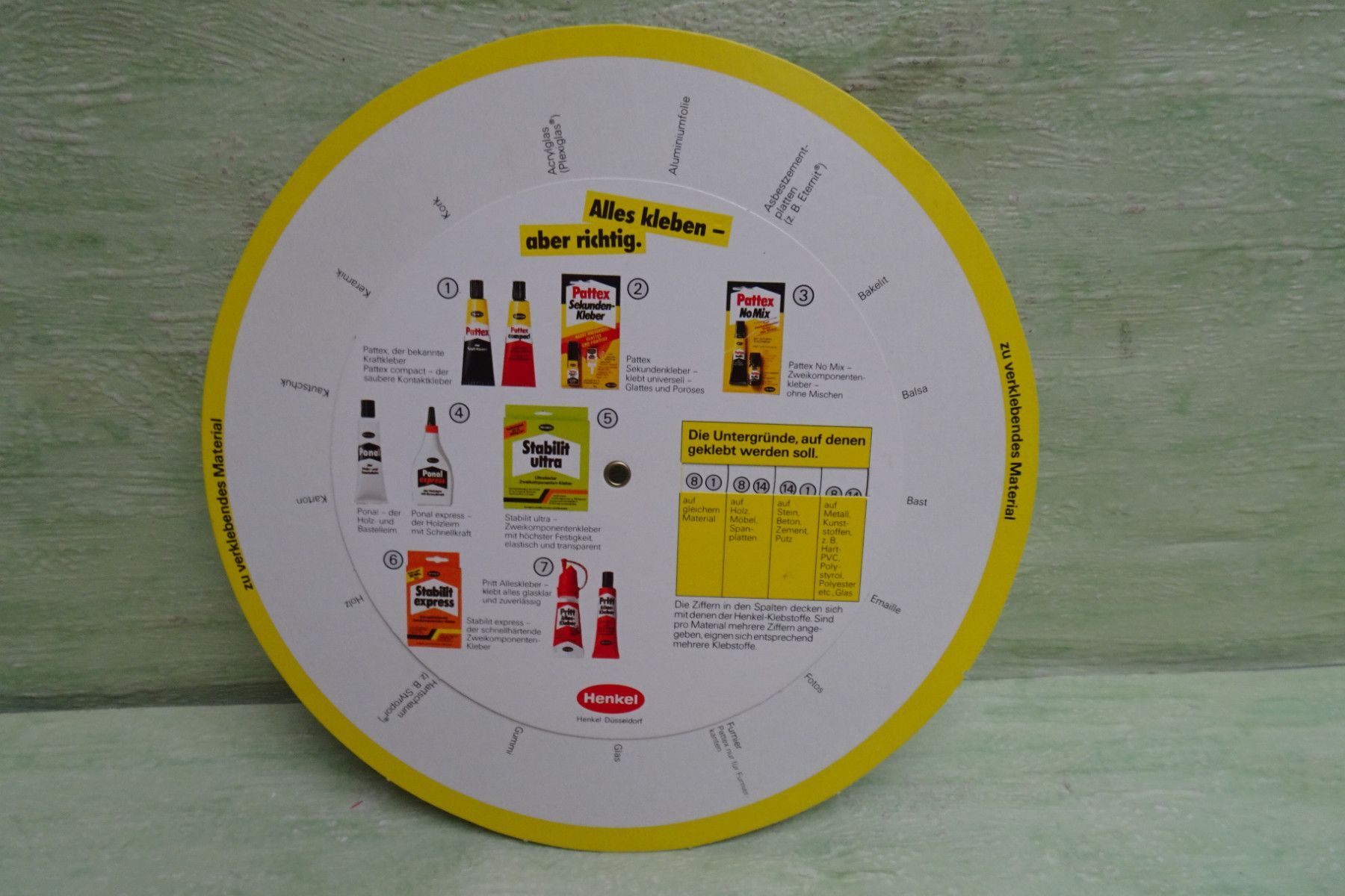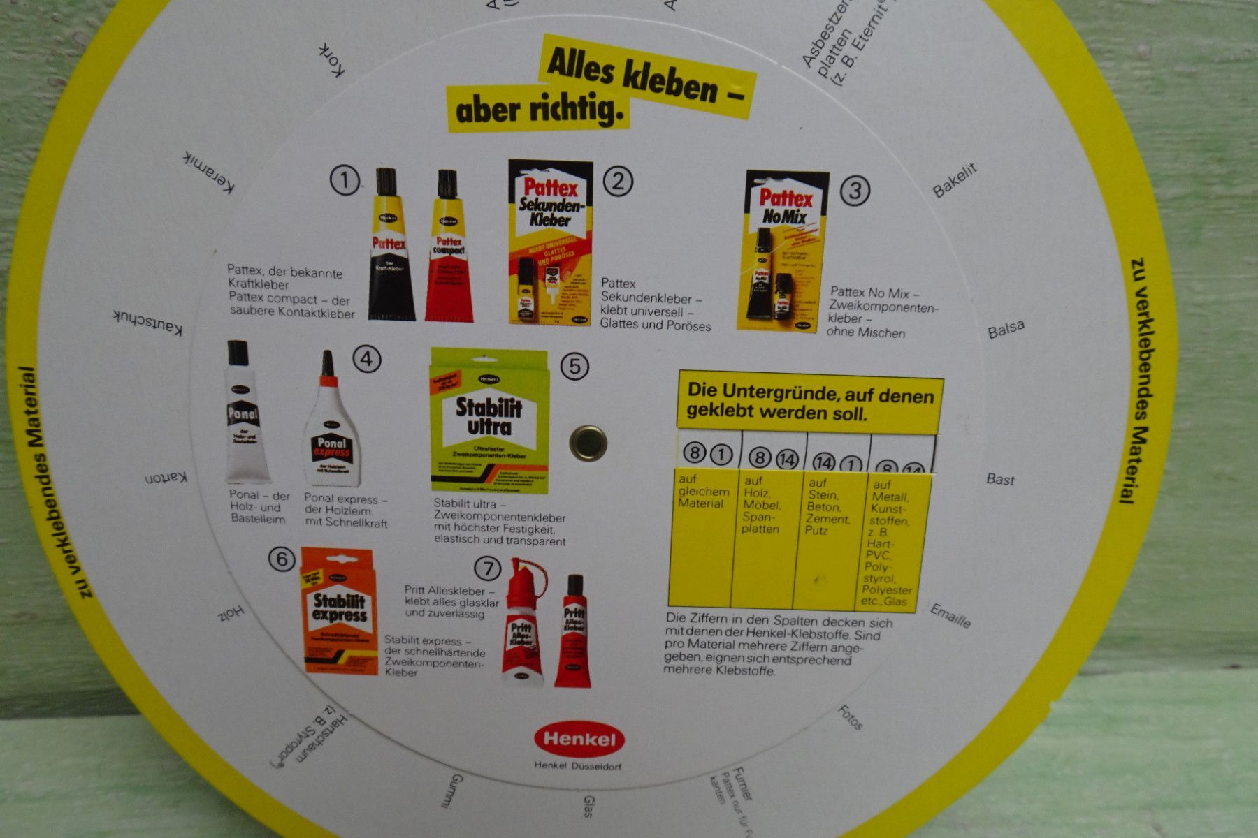 Sammeln & Seltenes ... aus Freude an schönen Dingen ..... altes Sammlerstück Pritt , Pattex, Ponal, Stabilit, Profix Sie wissen, welchen Klebstoff Sie brauchen Euro Die Drehscheibe hilft bei der Entscheidung !!! ... bitte Fotos anschauen ... !!! Bestandteil der Beschreibung Bitte berücksichtigen... Mehr