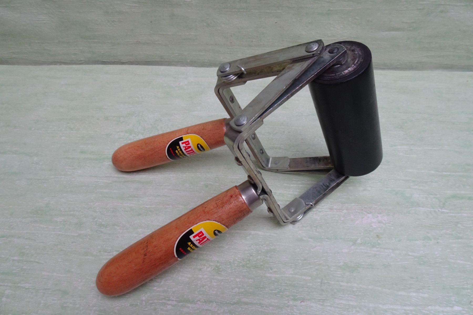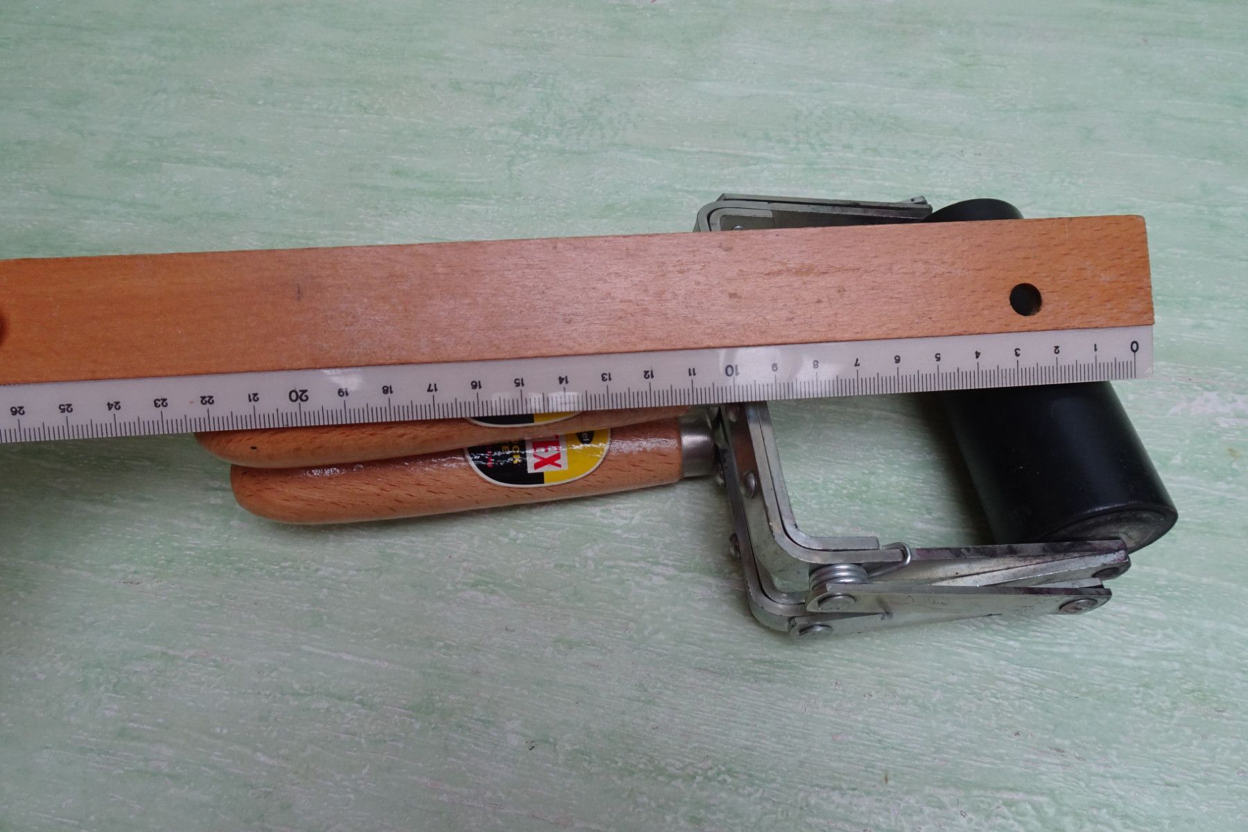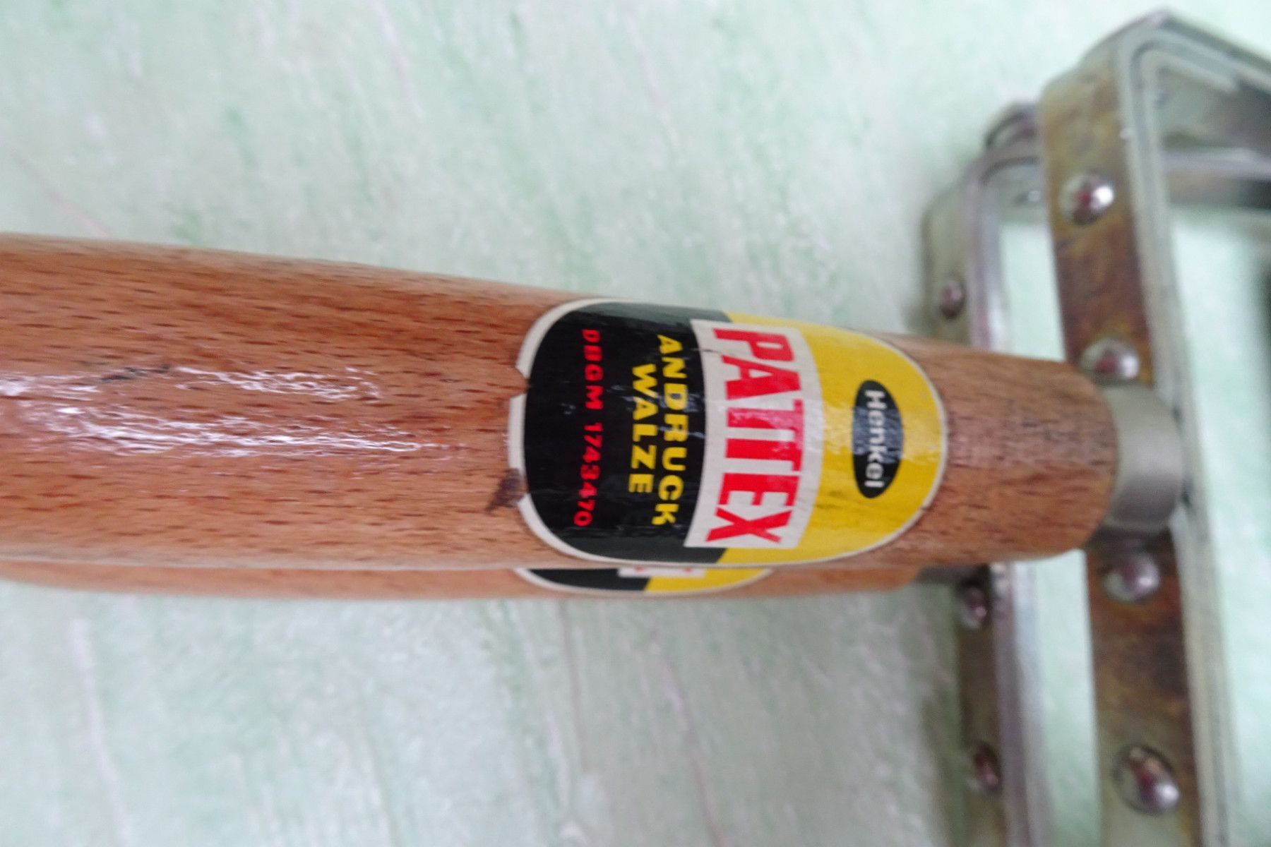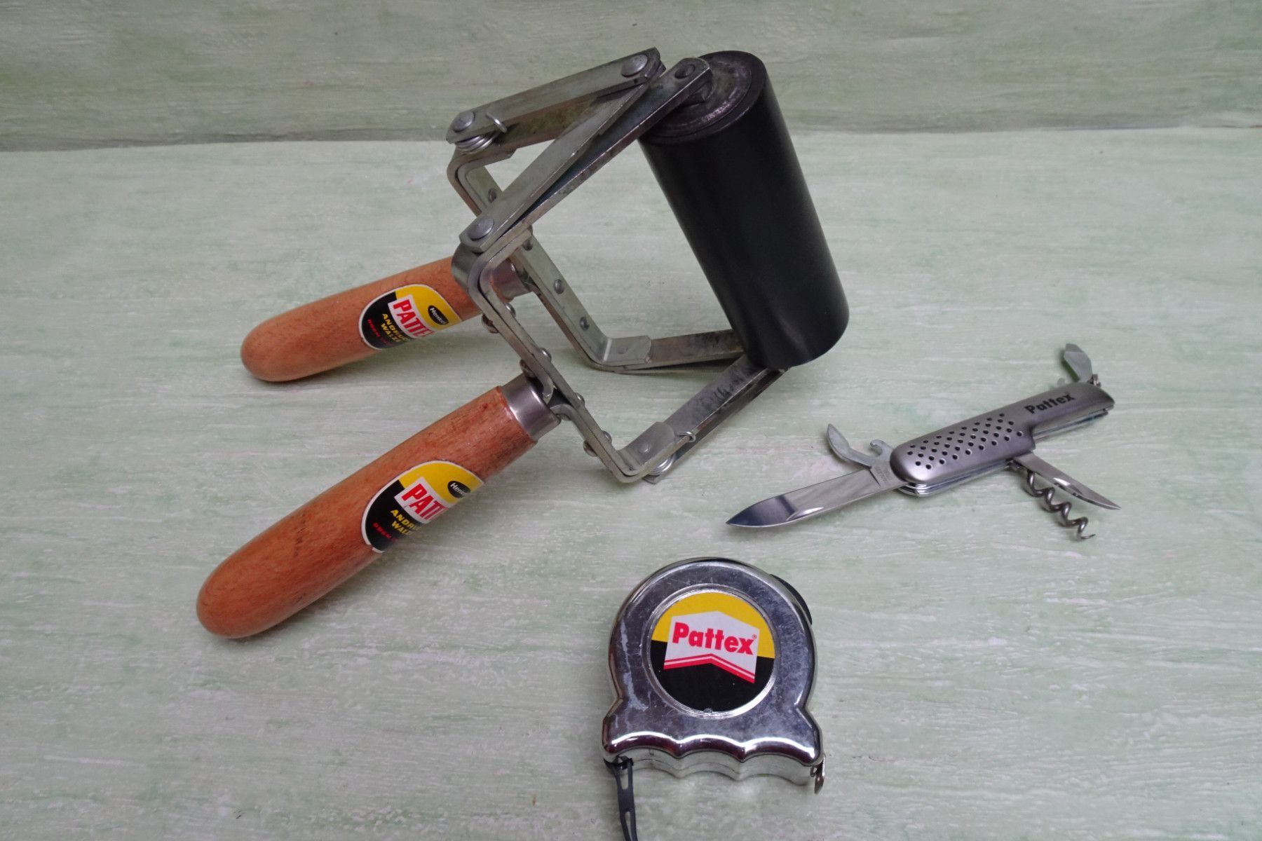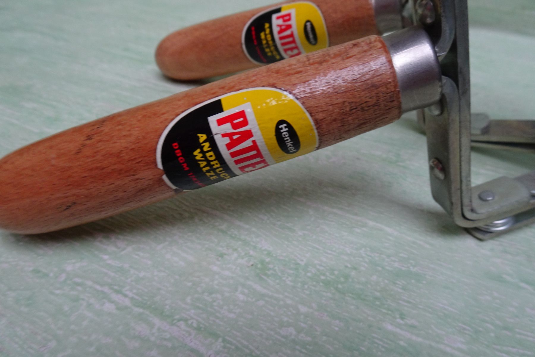 Vintage Henkel Düsseldorf Pattex Andruckwalze DBGM Maßband Taschenmesser