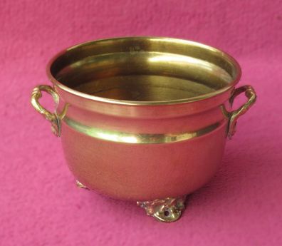 • Vintage Messing Übertopf Ø 12 cm Henkel Füße Kessel Pflanzgefäß Deko Topf Blumen
